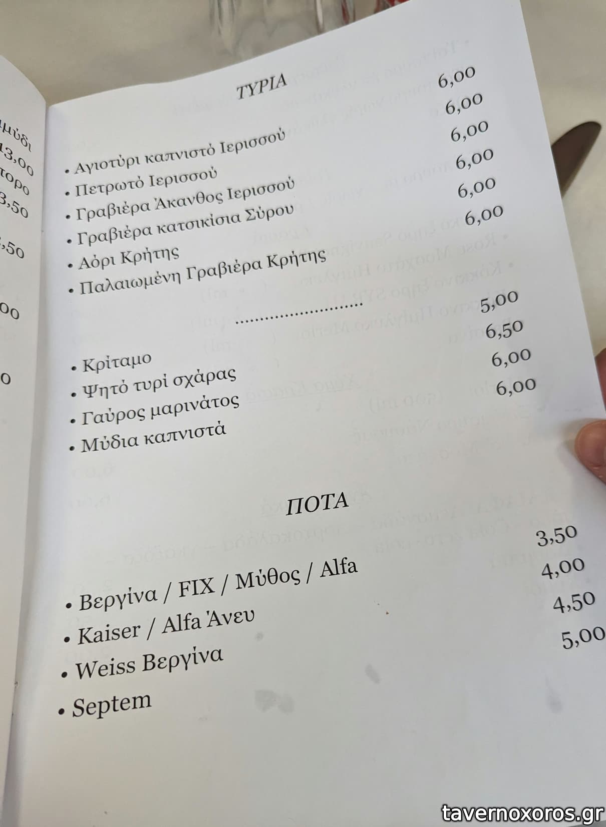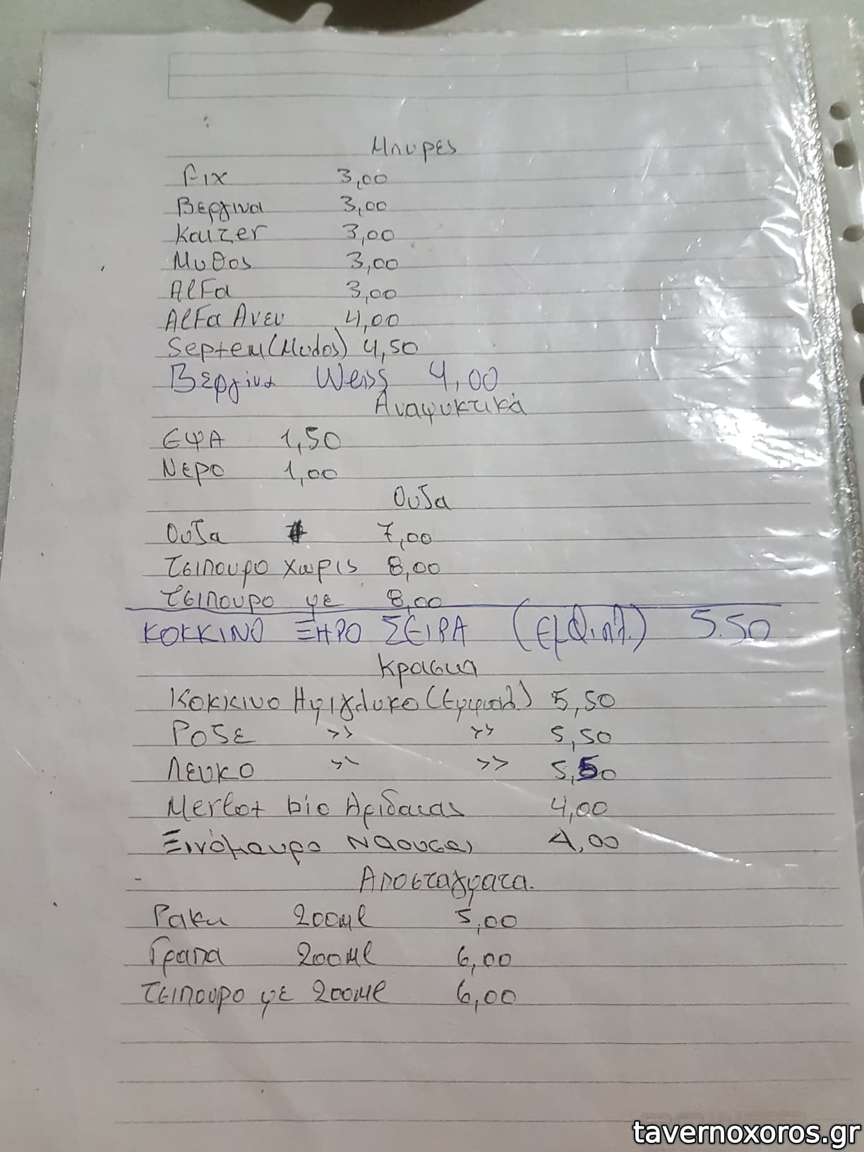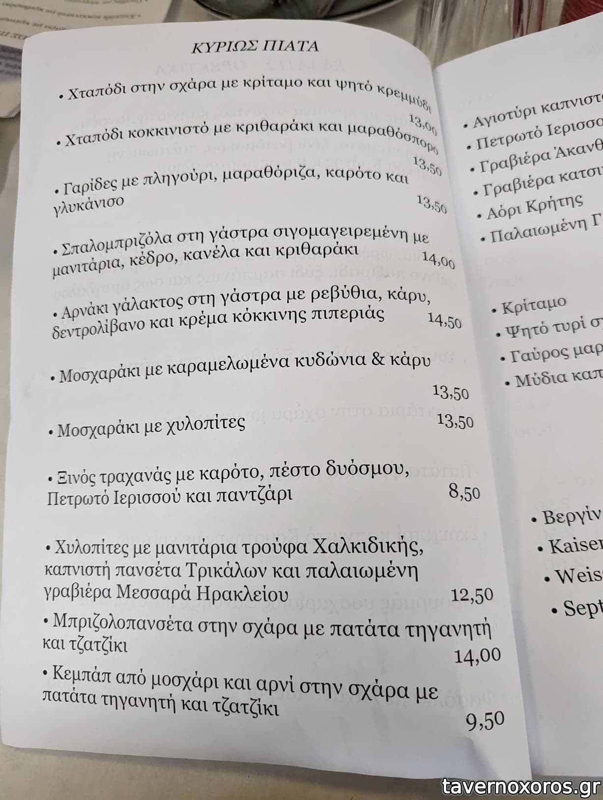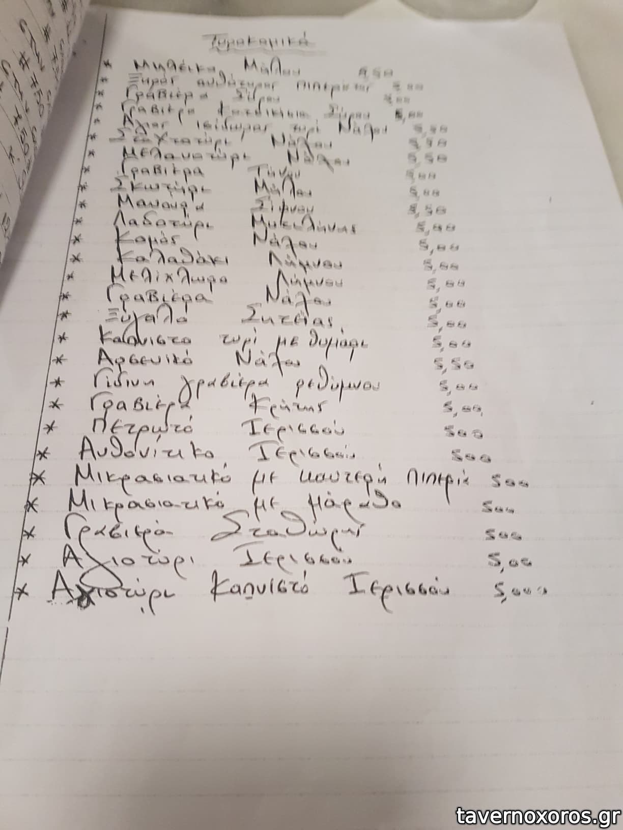 Κρασί Λευκό χύμα καλό, αρωματικό, προς το νερωμένο. Καλό κι αυτό, γιατί ήπιαμε αμέτρητα!