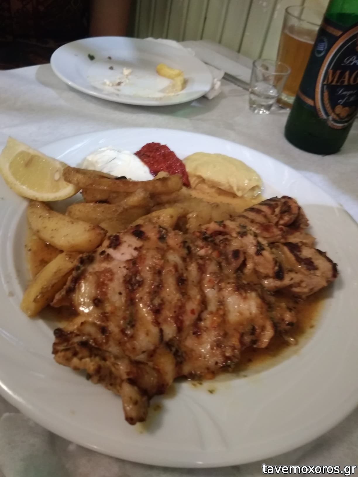 *ποτά: μια μπύρα και καλά weiss από την Ρόδο, πιό πολύ σε Amstel μου κανε, το τσίπουρο ήταν καλό-παγωμένο, ένα μπουκάλι κρασί merlot,