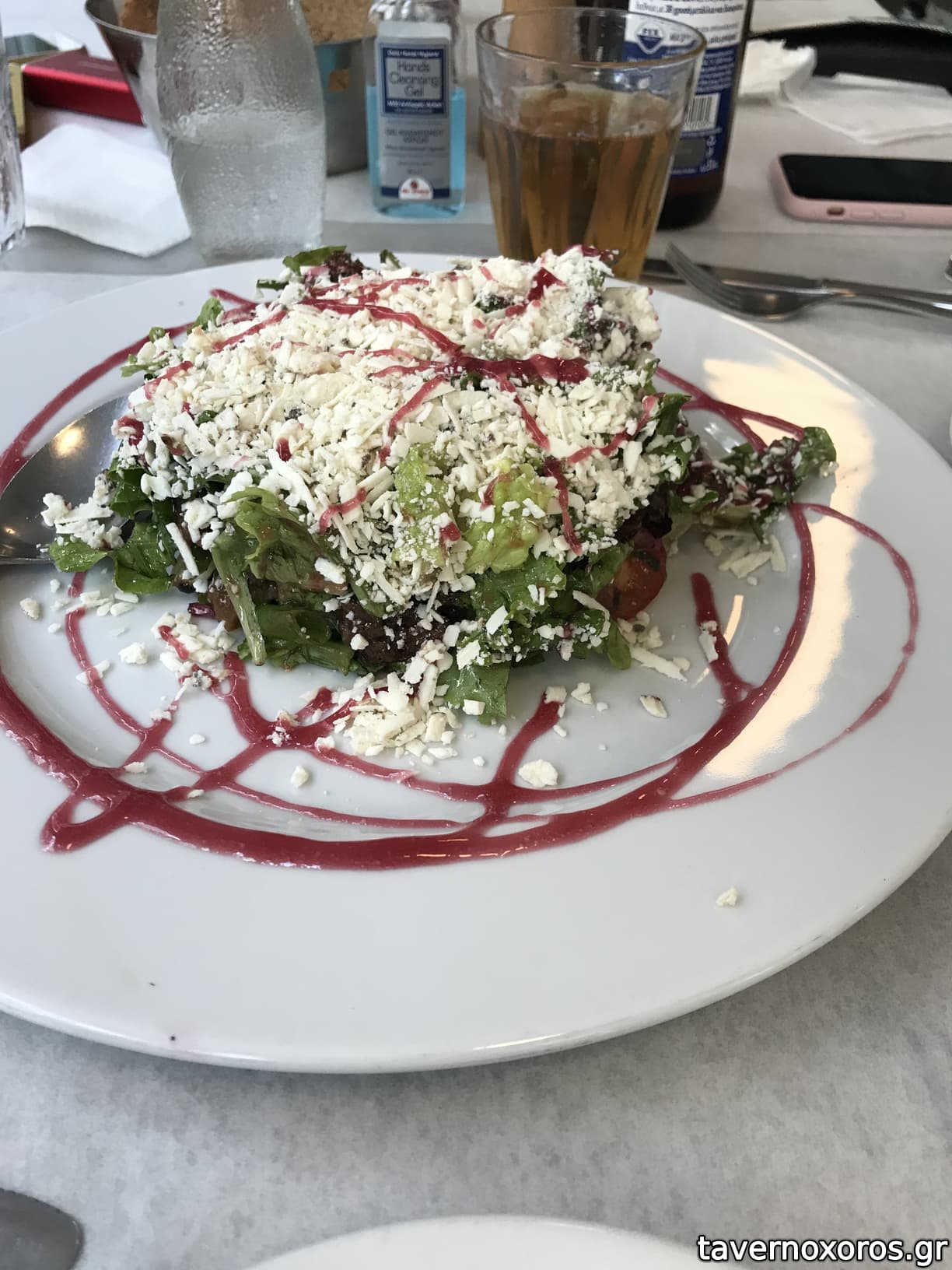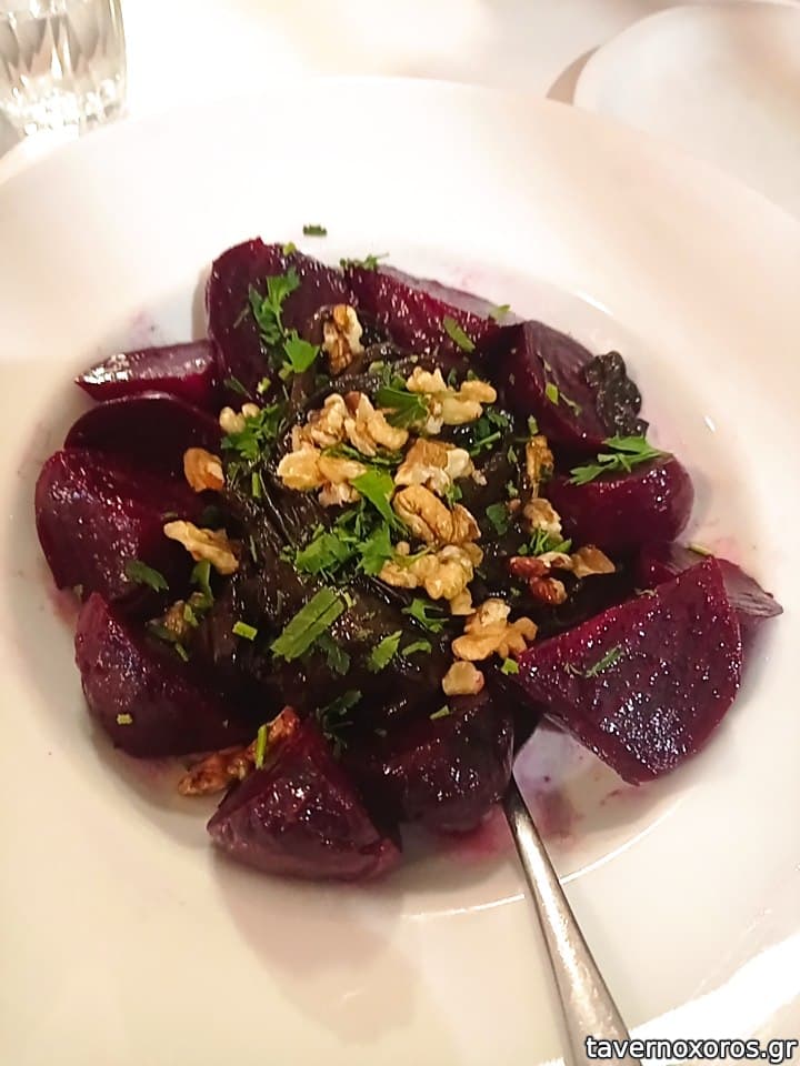 *σαλάτα παντζάρι με ξινοτύρι, καλό είχαν όμως 2 πετραδάκια τα χόρτα του παντζαριού, προσοχή στο πλύσιμο!
