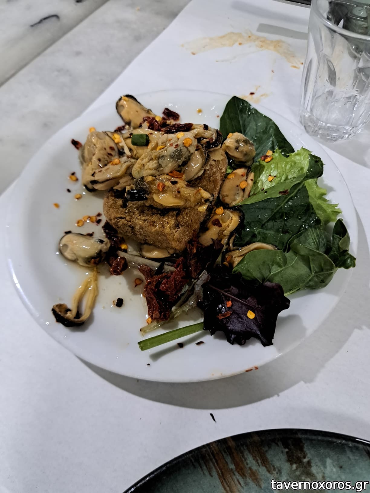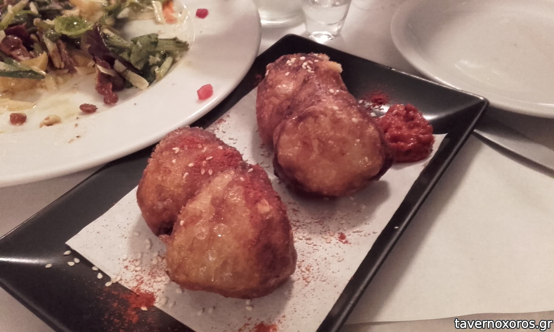 Ζεστο ψωμάκι με ελαιόλαδο για αρχή. Πικάντικη με σύγκλινο, παραπικάντικη για σαλάτα. Πιπεράτη γραβιέρα έκτακτη, κάπως πολλά όμως τα 4,