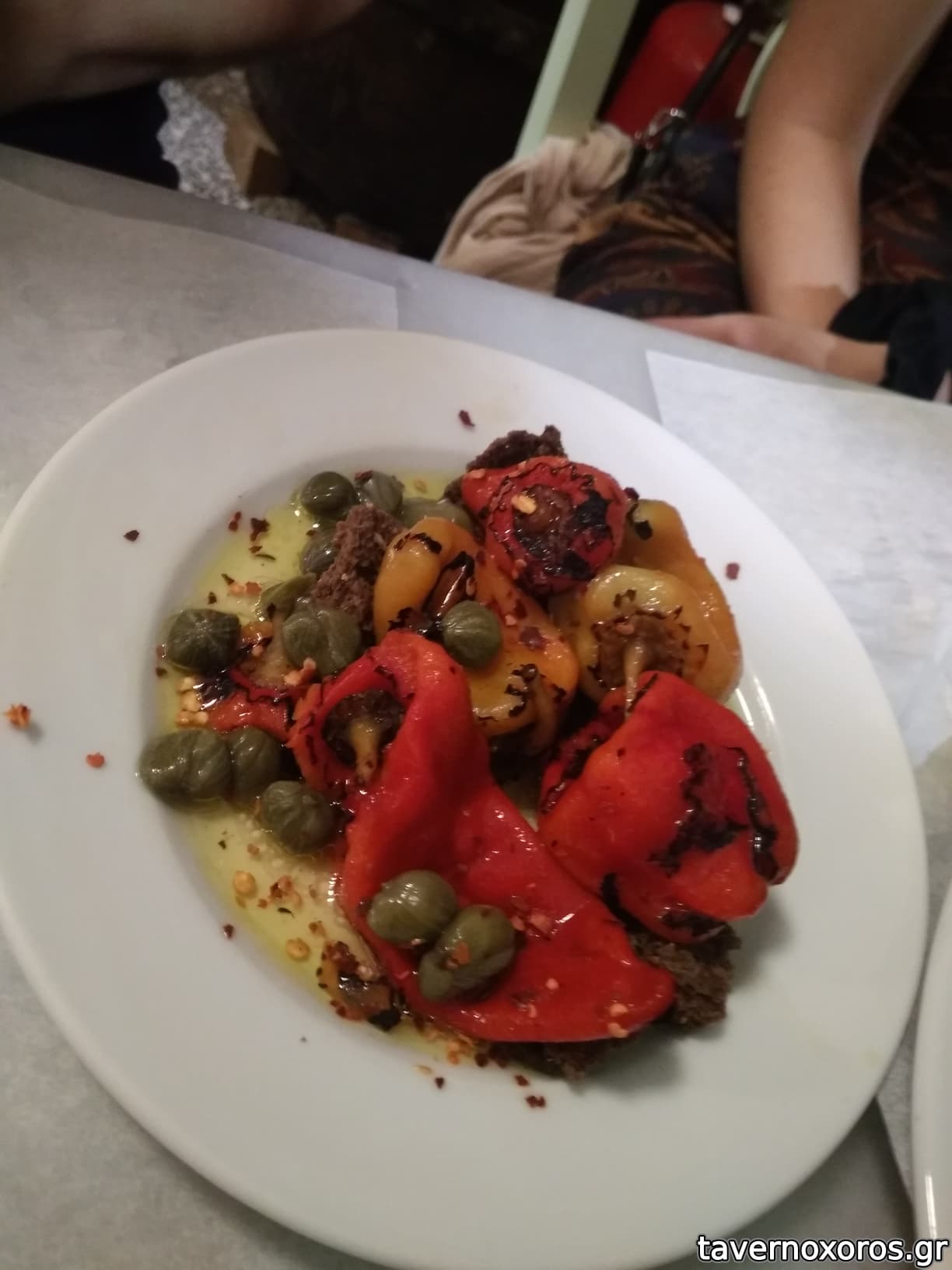 Η γενική εικόνα του φαγητού πολύ καλή. Μεταξύ των κανπιστό σκουμπρί, κοτόπουλο γλυκοκαυτερό, σπαλομπριζόλα, φάβα, μανιτάρια, μπιφτέκι βουβαλίσια δεν εντόπισα τίποτε δυσάρεστο (το αντίθετο, ήταν όλα πολύ καλά). Δεν με ικανοποίησε ιδιαίτερα το κους κους που συνέδευε αρκετά πιάτα, ούτε το ψωμί. Ήπιαμε ρακή, πολύ καλή.