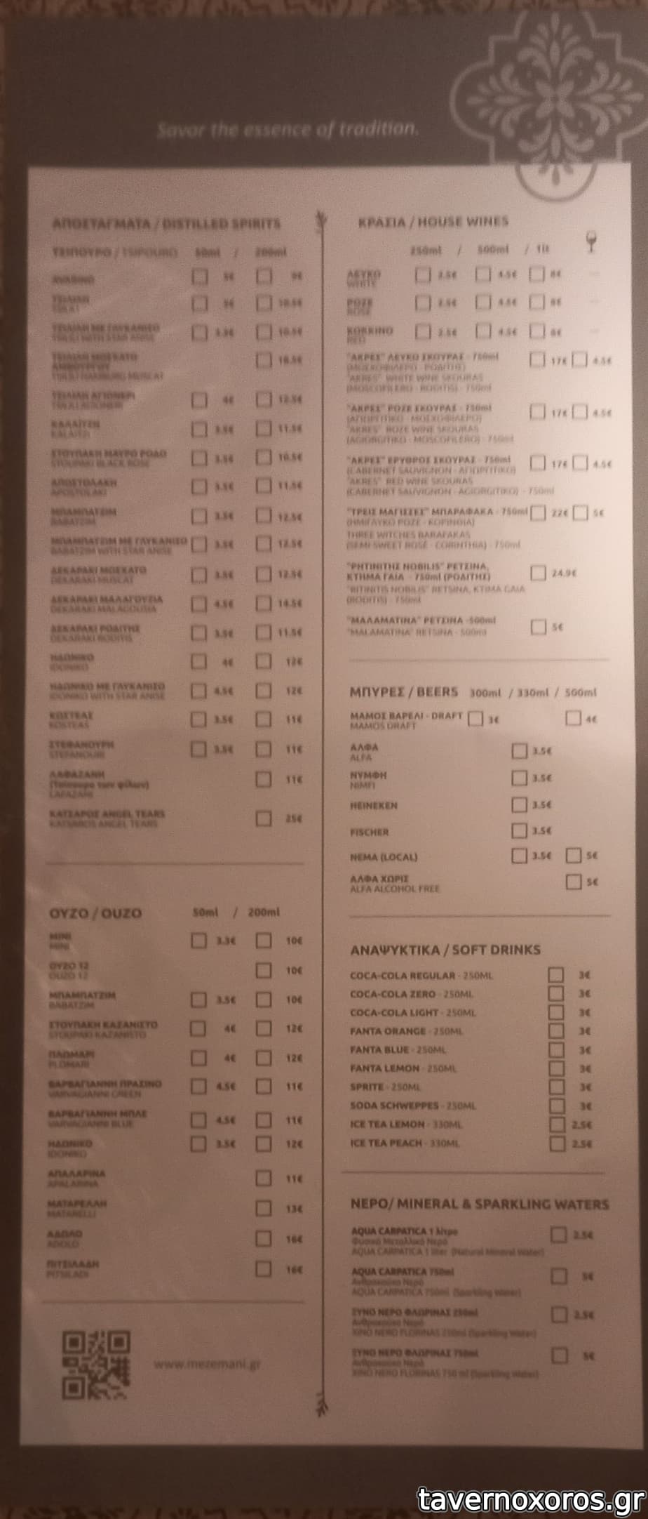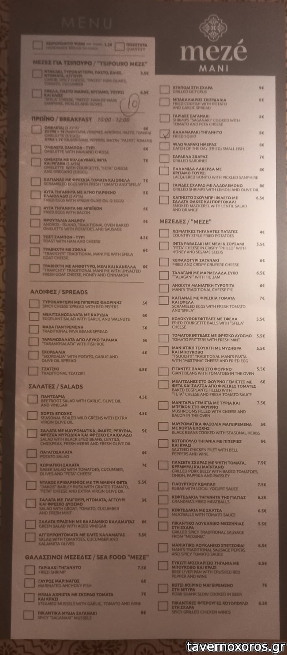 Το μαγαζί δεν σου γεμίζει το ματι για μεζεδοπωλείο, η αισθητική των εξωτερικών τραπεζιών είναι περισσότερο καφετέρειας. Ο κατάλογος όσο μεγάλος πρέπει και στο σέρβις μια κοπέλα πολύ ευγενική και εξυπηρετική.