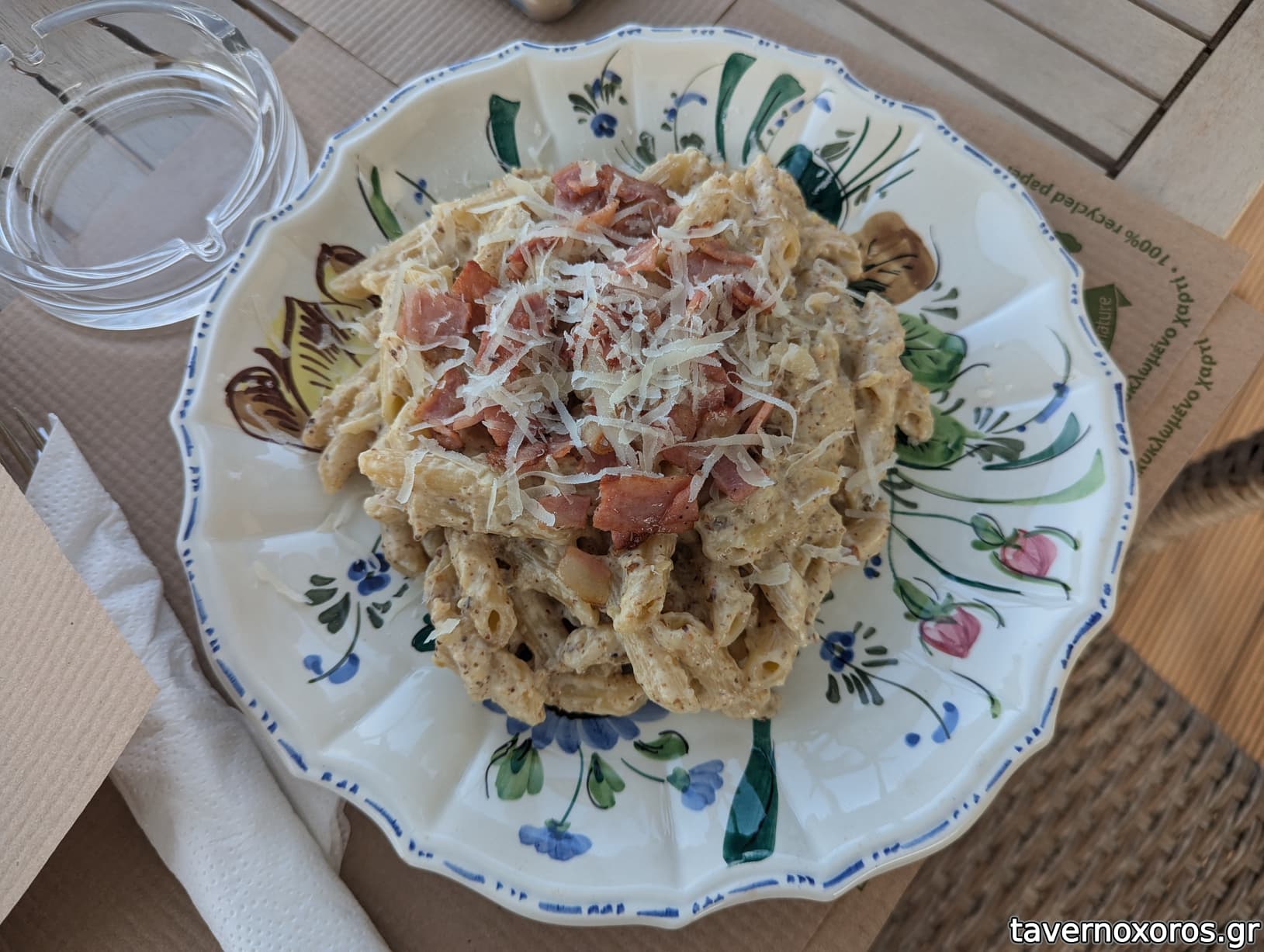 Πένες με κρέμα γάλακτος, καρύδι, μπέικον, παρμεζάνα (ενδιαφέρον το καρύδι, ήθελε παραπάνω σάλτσα να γλυστράει)