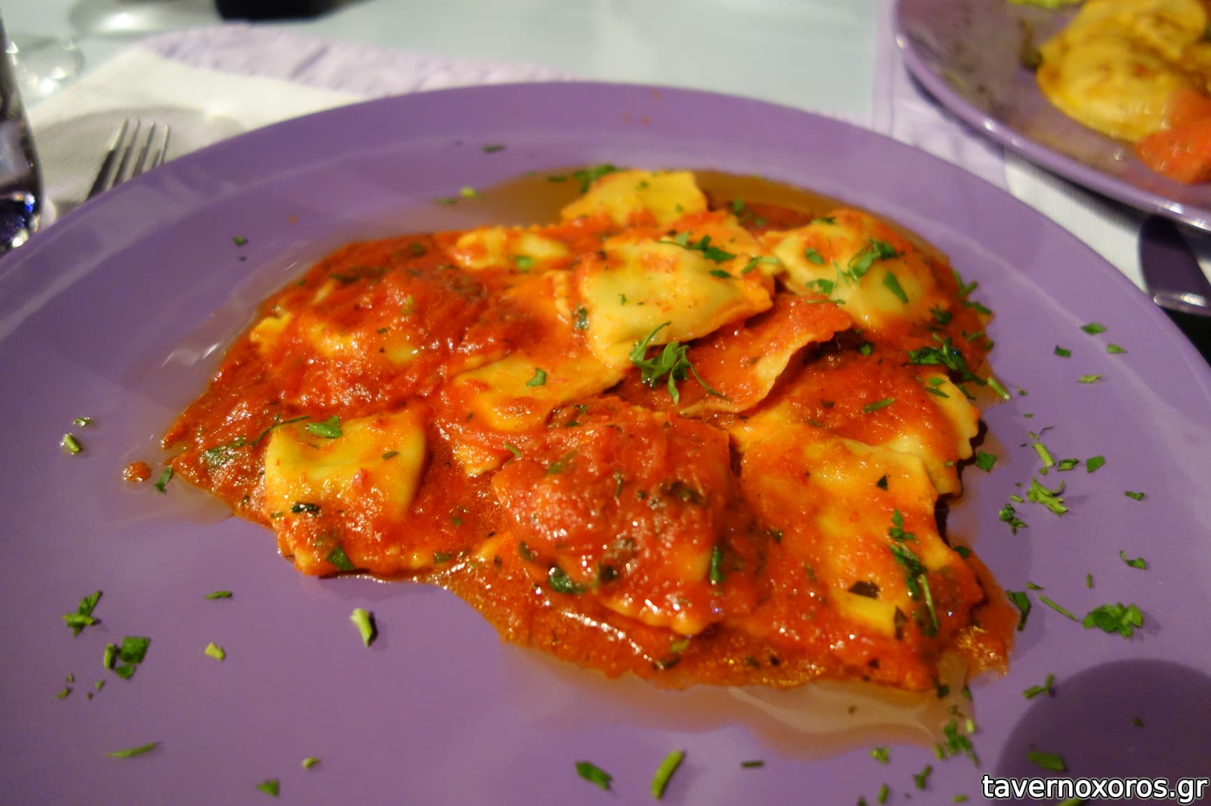 "Tortelli Toscana al pomodoro" = φρέσκια πάστα με γέμιση τυριού Ρικόττα & σάλτσα ντομάτας (καλά, η σάλτα πολύ καλή η γέμιση έτσι και έτσι)
