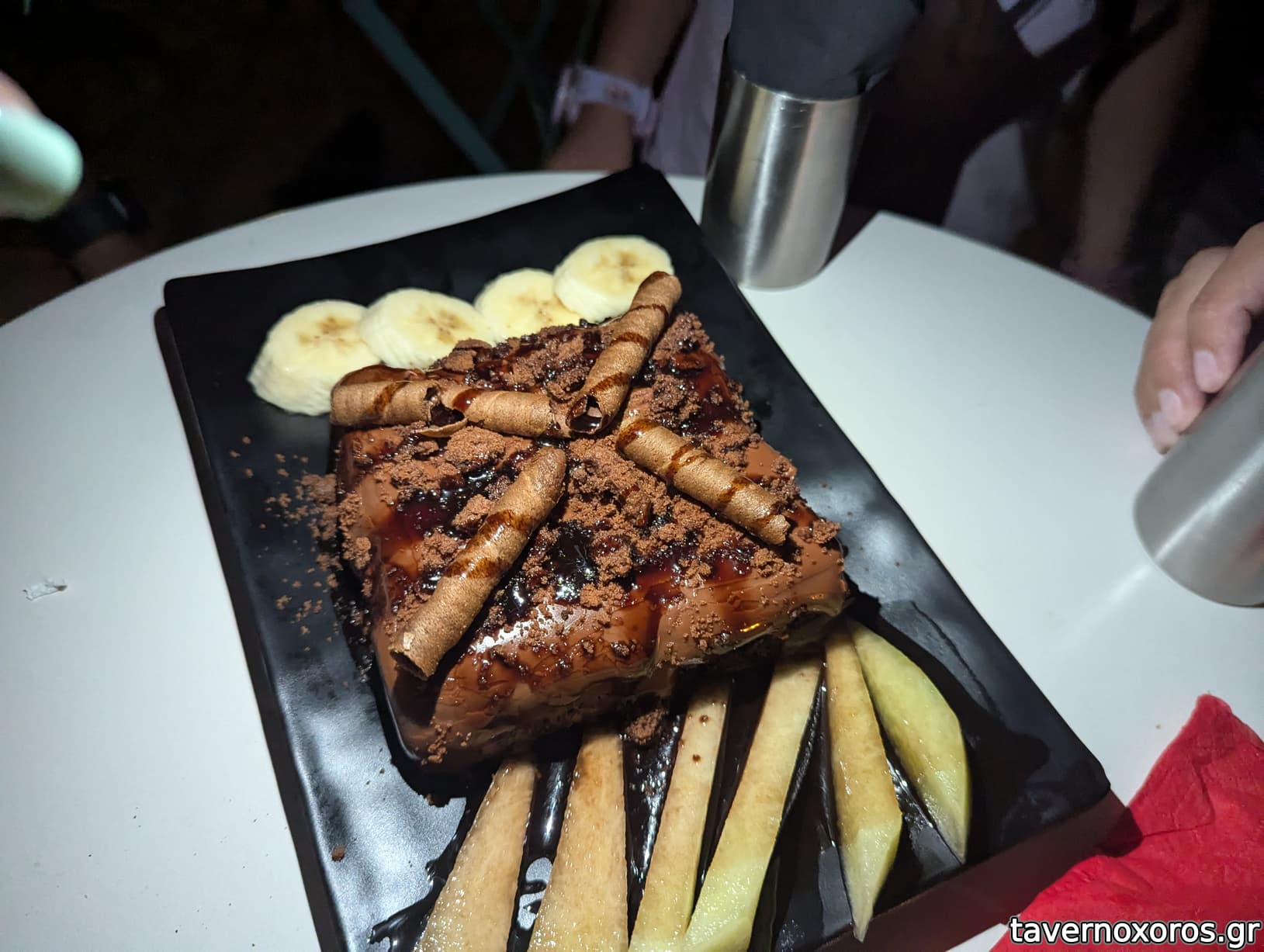 Σοκολατόπιτα κερασμένη (μέτρια, έμοιαζε βιομηχανική, με πολλή ζάχαρη)