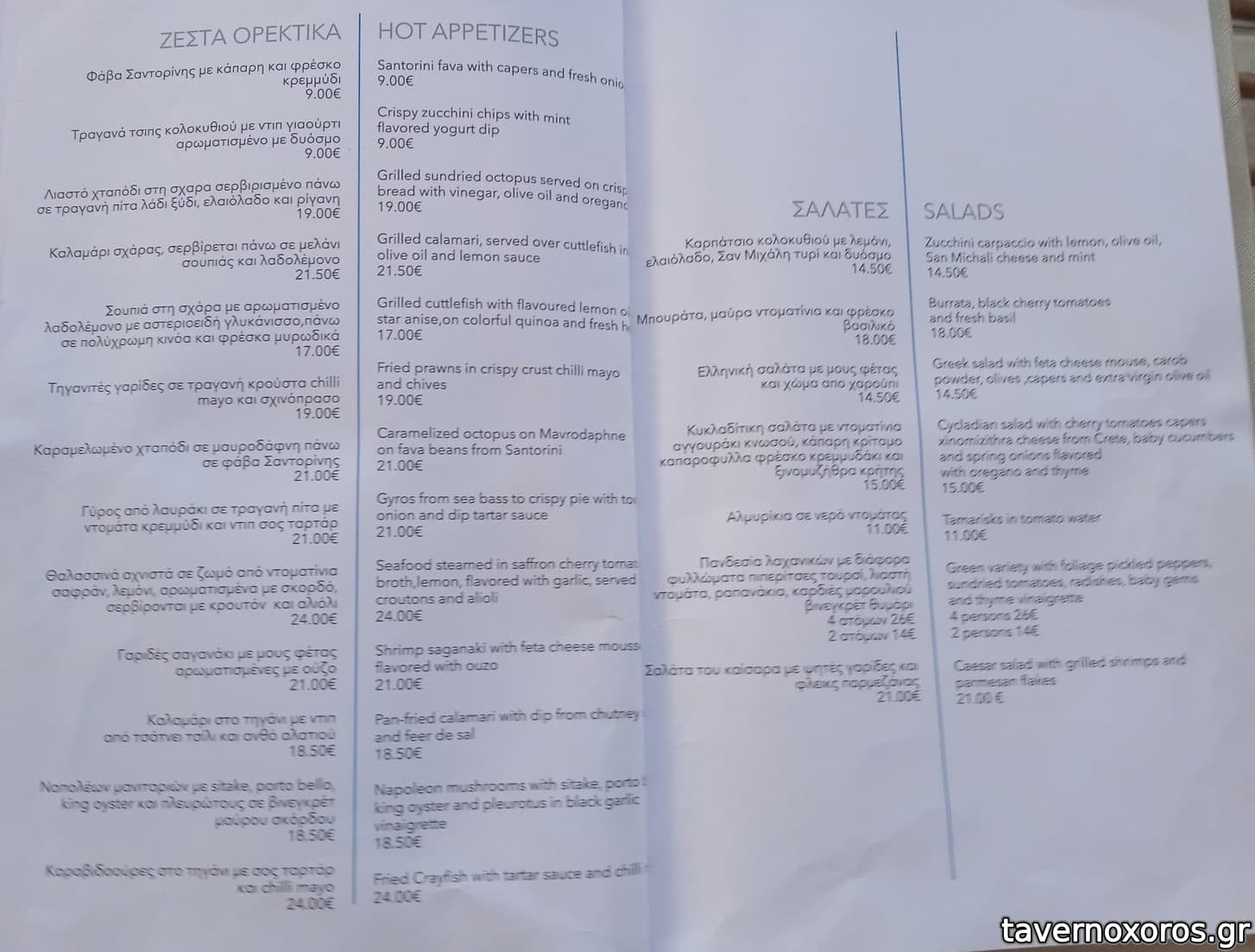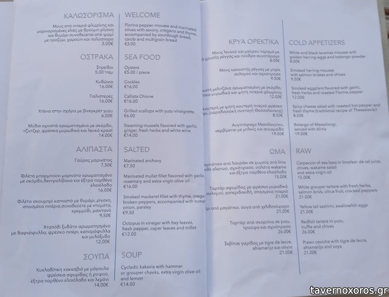 Αύγουστος 2024, άτομα τρία, πήγαμε να απολαύσουμε την περιβόητη «μαγεία» της ελληνικής υψηλής γαστρονομικής κουλτούρας... Παραγγείλαμε μία σαλάτα κυκλαδίτικη, ένα μπιφτέκι, μία γαρίδες λινγκουίνι (τα τέσσερα τεμάχια 26 €), ένα φιλέτο μαγιάτικο με τέσσερις baby πατατούλες, μία μπίρα, ένα νερό, ένα προφιτερόλ και μία πάβλοβα (βλ. φωτο). Ποσότητες αστείες, μουσική εξαιρετική, σέρβις άψογο. Α, ναι, έφεραν επιπλέον, χωρίς όμως να το ζητήσουμε, εννιά φέτες ψωμί, μια κουταλιά αλοιφή κάτι σαν πάπρικα και καμιά δεκαριά ελιές, τα οποία χρεωθήκαμε 9,