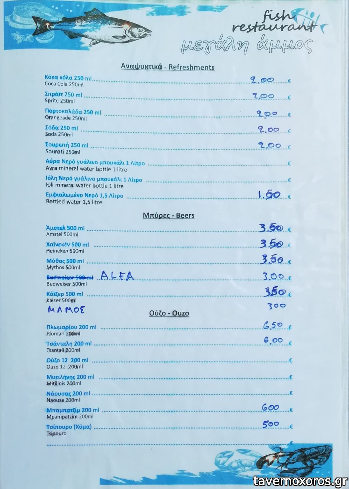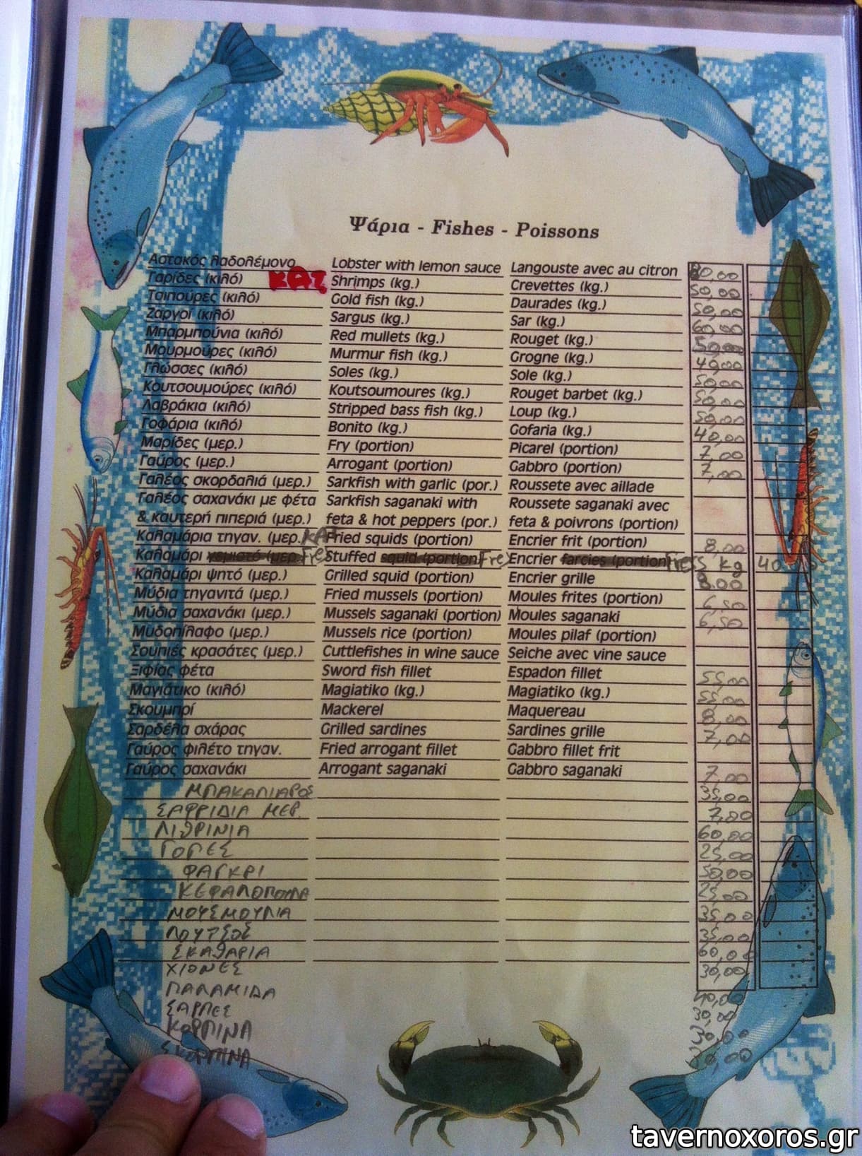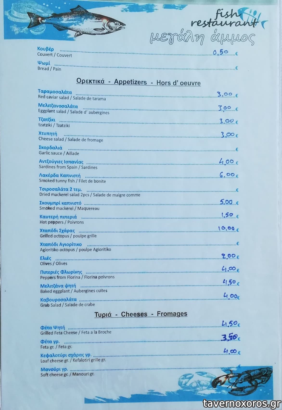 - Αλμυρά, γαύρος, καλαμάρι τηγανητό, χταπόδι και μύδια αχνιστά, όλα πολύ καλά.