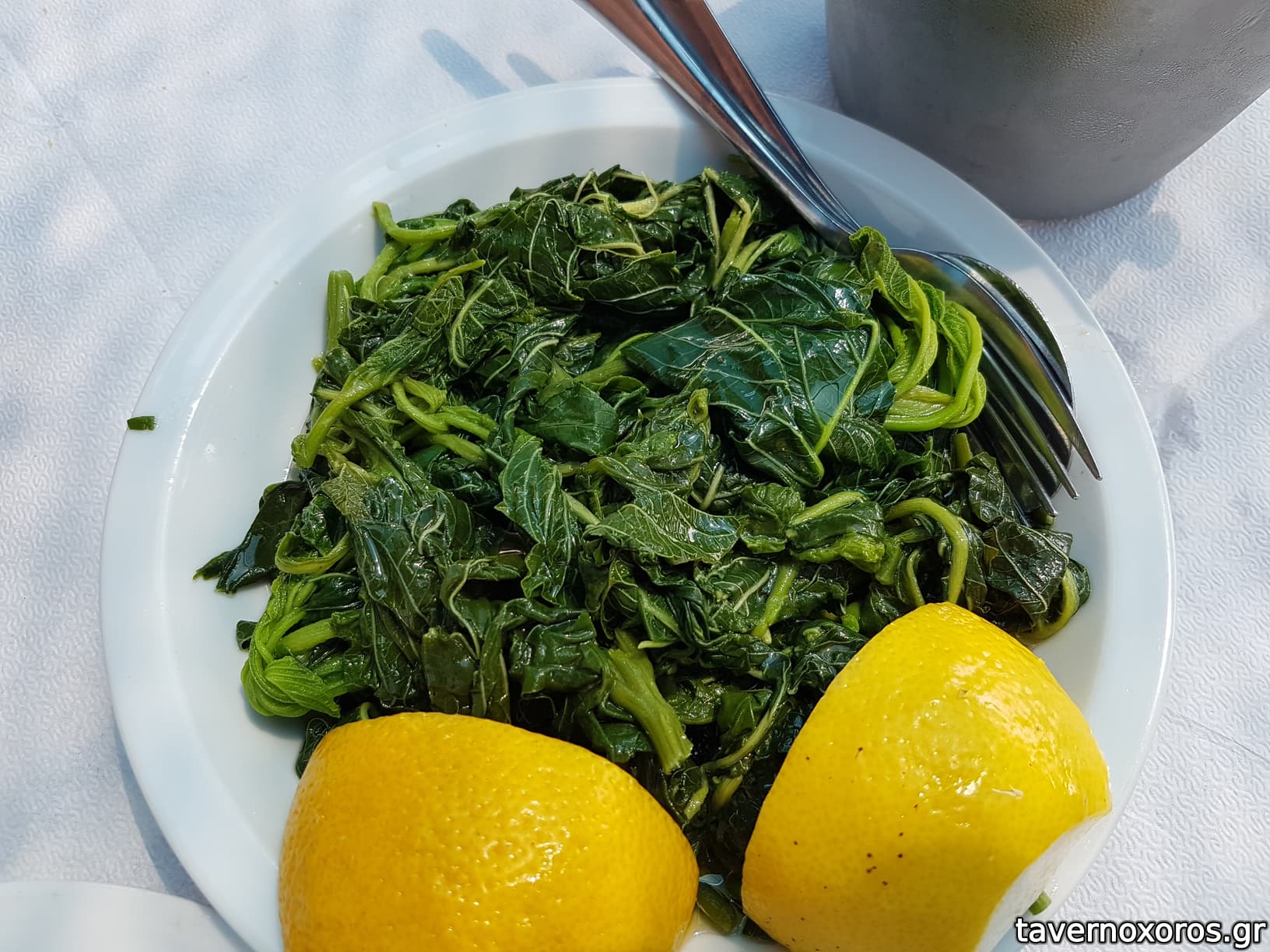 -Λευκός ταραμάς, πατάτες τηγ, πολίτικη, χόρτα μια χαρά.