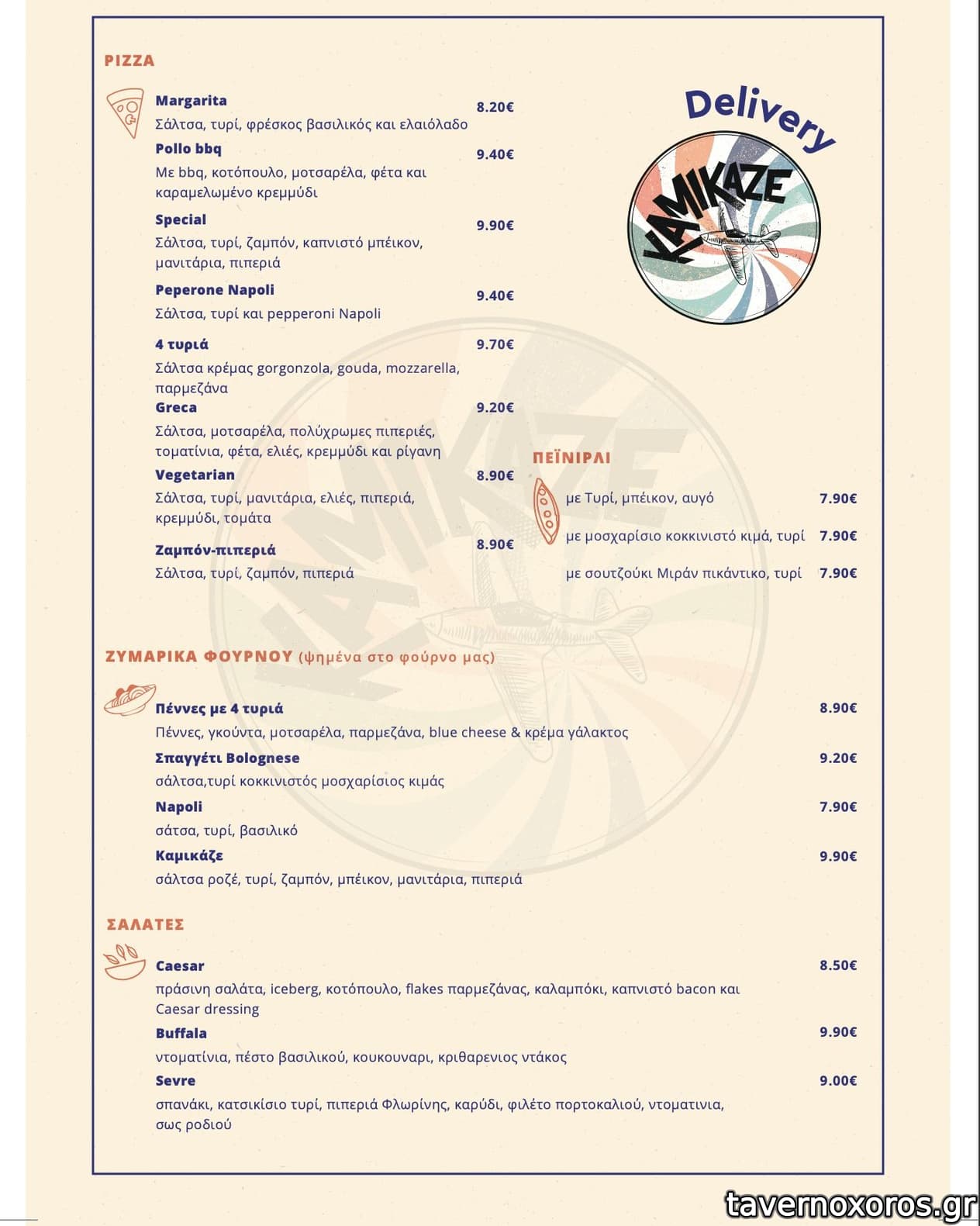 | Λέξεις κλειδιά | Kamikazi, Καμικάζι, #κοντοσούβλι, #burgers, #μακαρονάδες, #χοιρινή, #ζυμαρικά, #πεϊνιρλί, #κοτόπουλο |