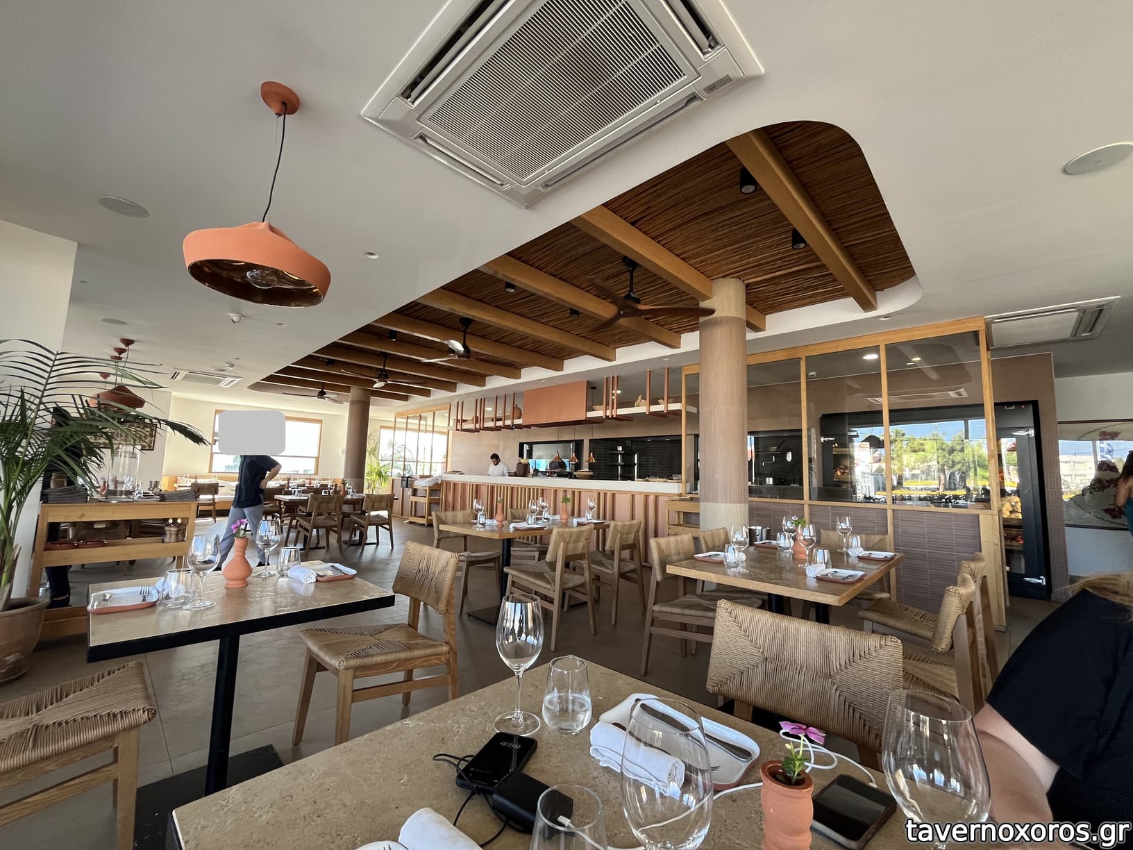 Μοντέρνο καινούριο εστιατόριο στο Φαληράκι – αυτοαποκαλείται ταβέρνα αλλά είναι πολύ πολυτελές.