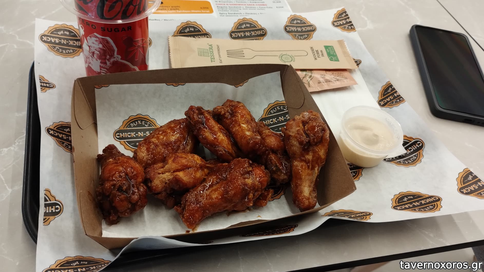 Μικρή μερίδα φτερούγες (wingz τις λέει). Κανονικά είναι 6 τεμ., αλλά έβαλαν 8. (μια χαρά)