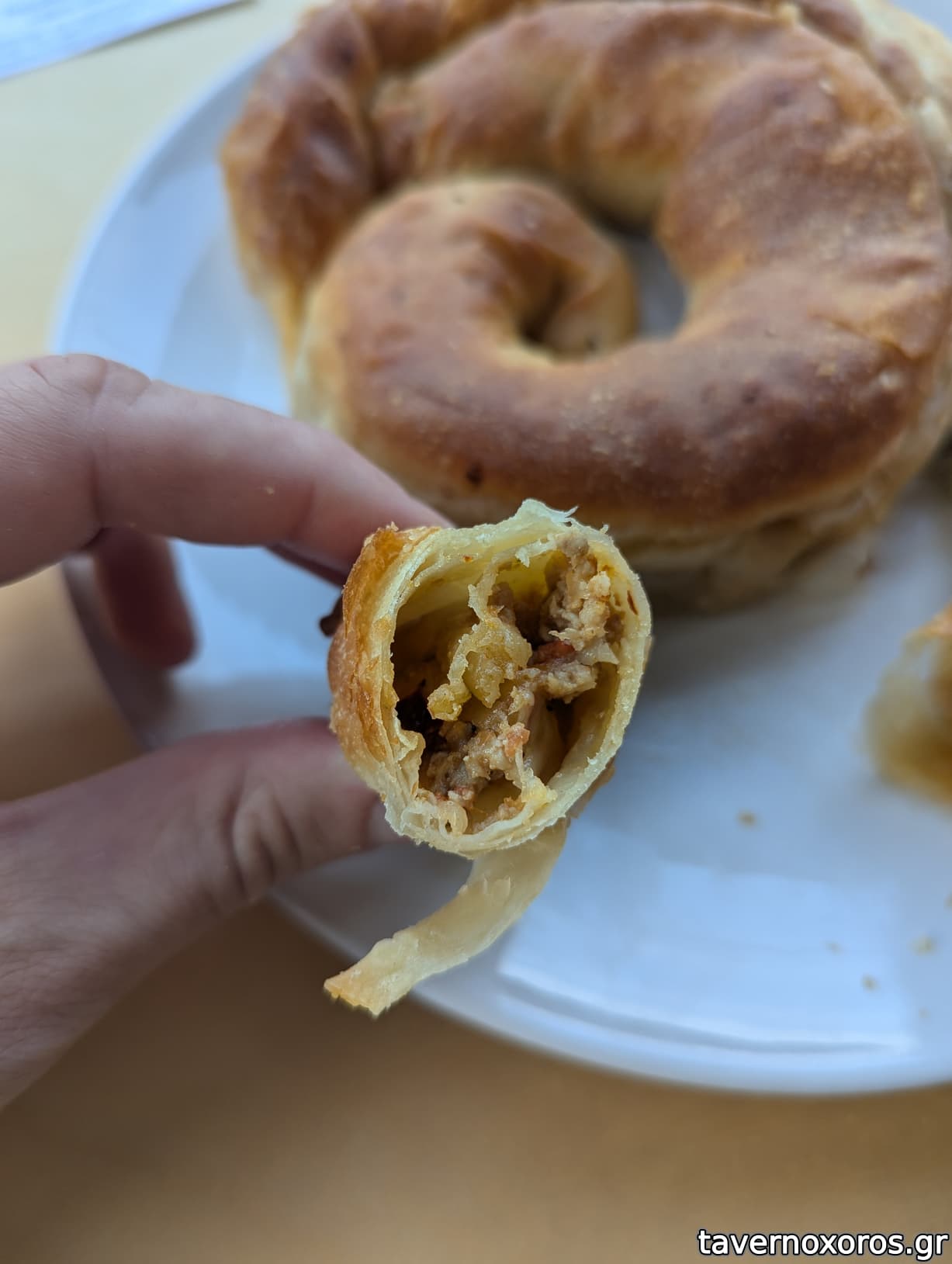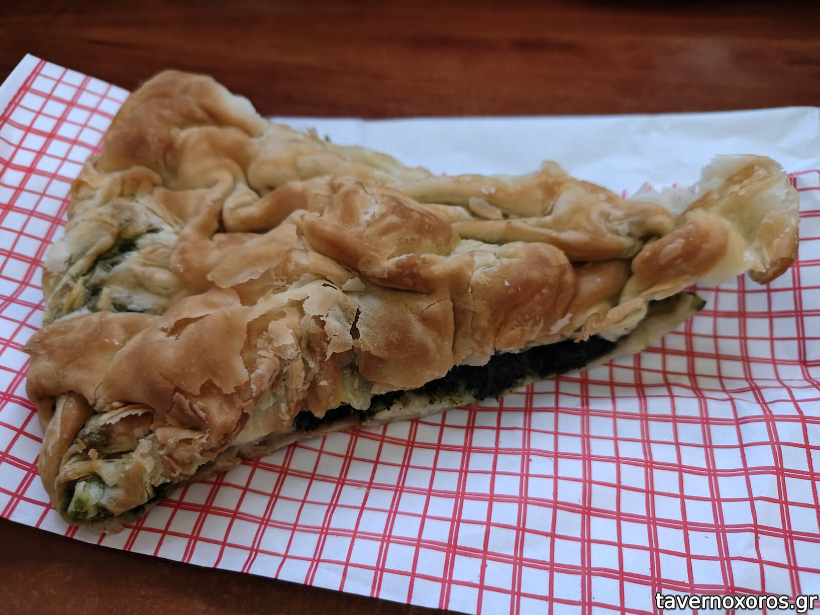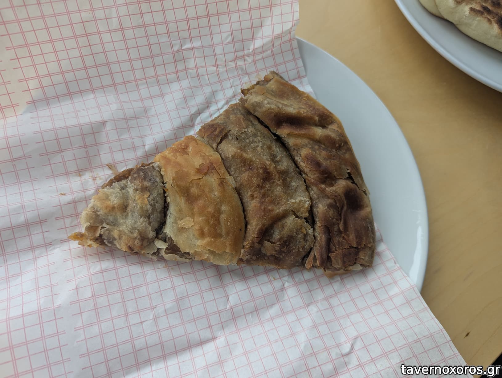Έχει μέσα διάφορα μπουρέκ. Είναι φύλλο διαφορετικό από την κλασική πίτα, πιο μαλακό και λεπτό αλλά όχι σφολιάτα. Είχε διάφορους συνδυασμούς. Ζήτησα και πλήρωσα (2.