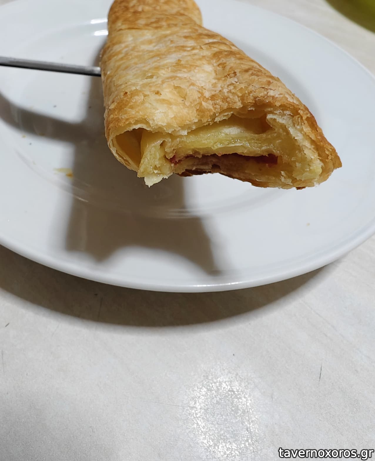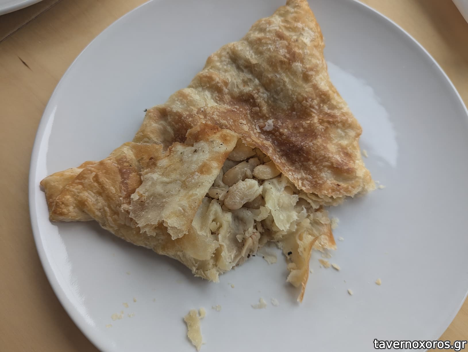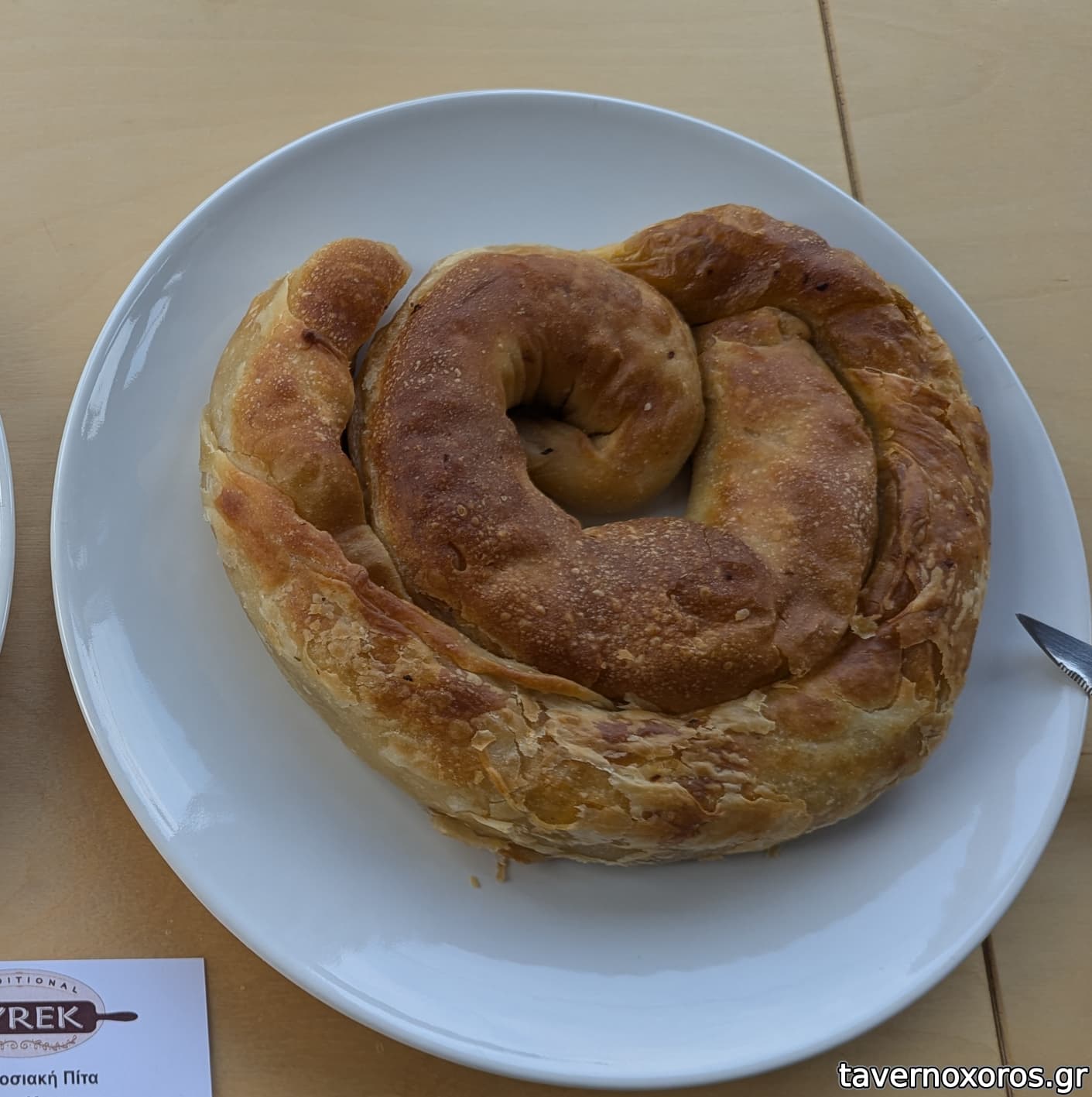 Έχει μέσα διάφορα μπουρέκ. Είναι φύλλο διαφορετικό από την κλασική πίτα, πιο μαλακό και λεπτό αλλά όχι σφολιάτα. Είχε διάφορους συνδυασμούς. Ζήτησα και πλήρωσα (2.
