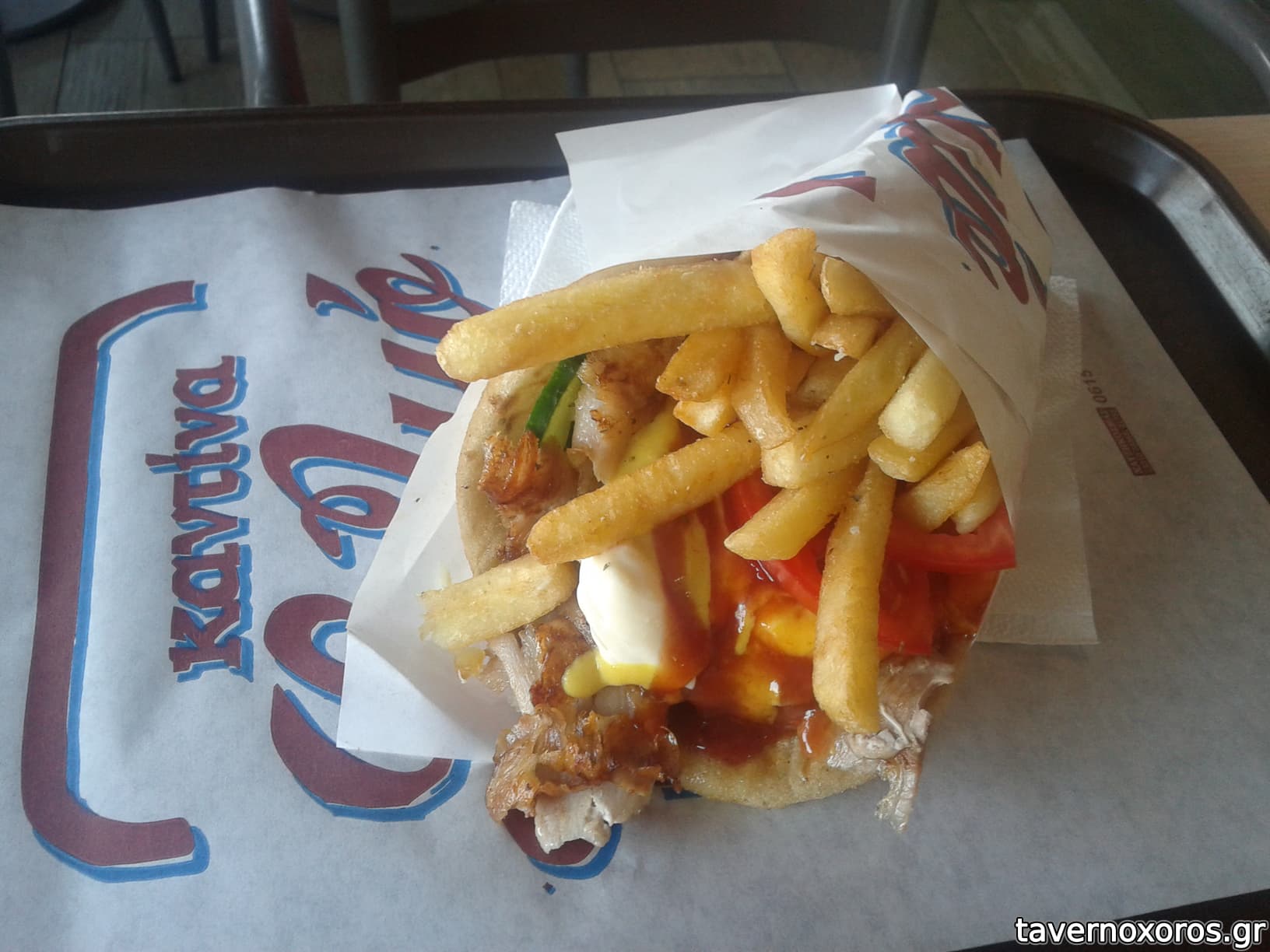 Σε μένα το απ όλα είχε μαγιονέζα αγγούρι και κεφαλοτυρι (χωρίς τζατζίκι για τους νοτιους ή κέτσαπ μουστάρδα για τους βόρειους). Καλούτσικο το κρέας, φρέσκα υλικά καλό μέγεθος γενικά μια χαρά αποτέλεσμα.
