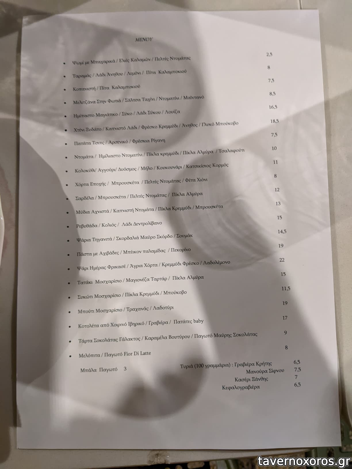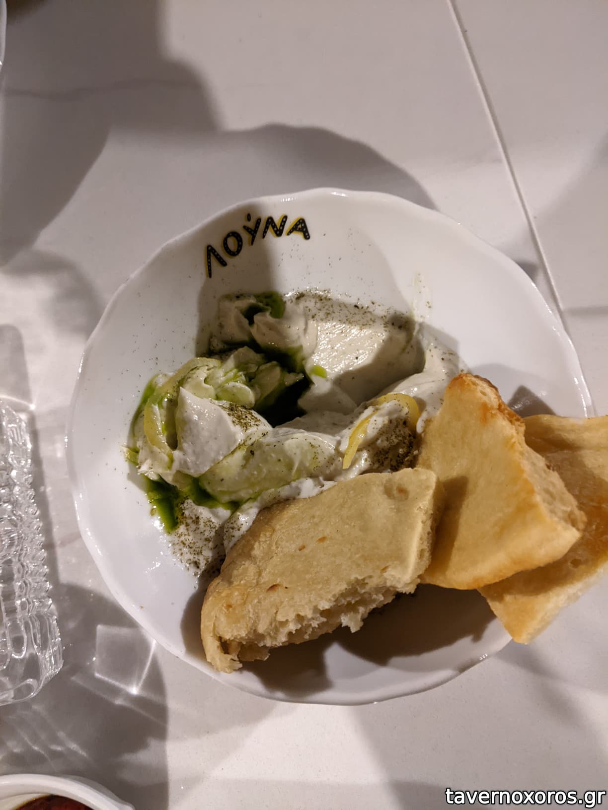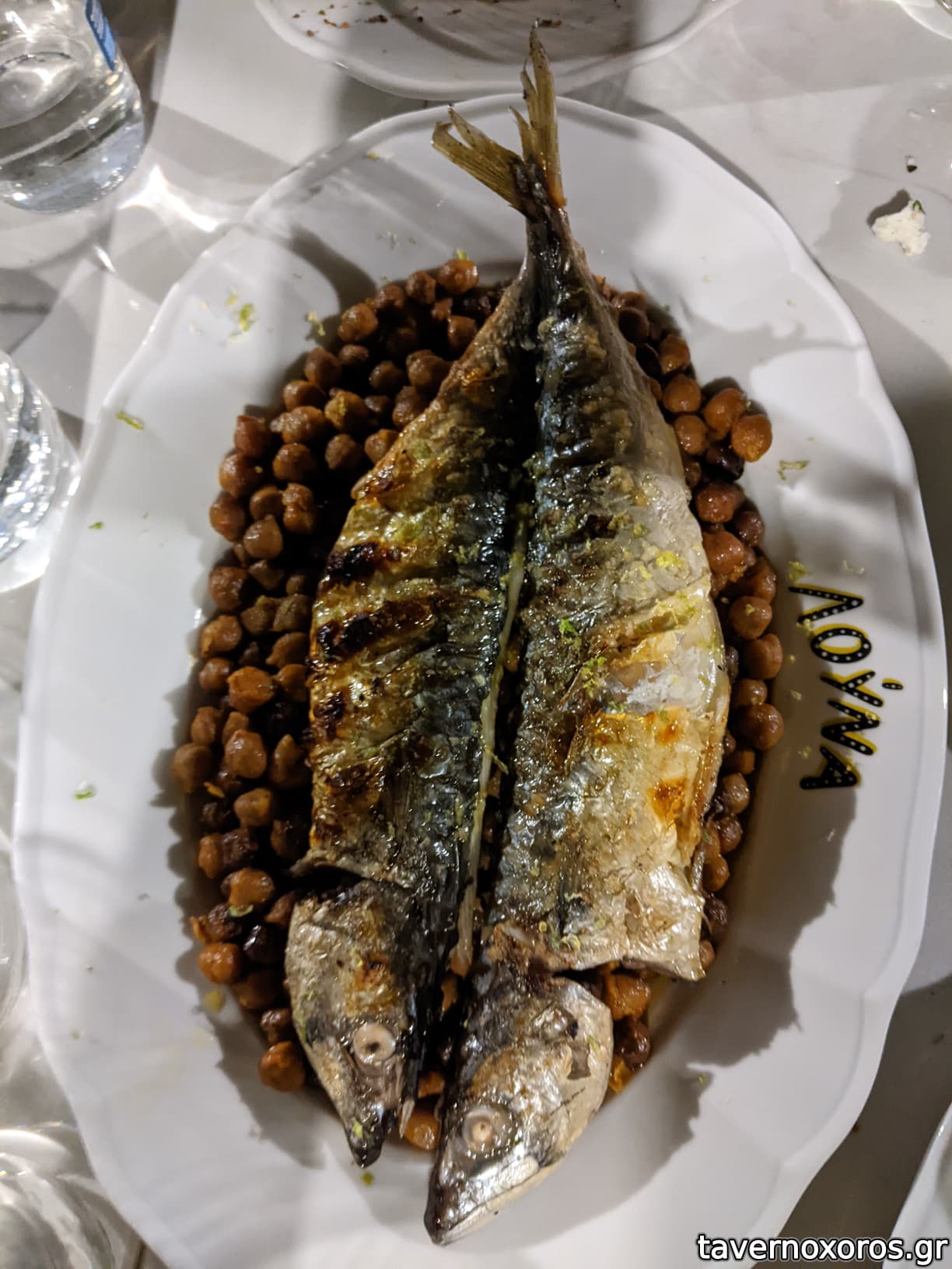 "Ρεβυθάδα / Παλαμίδα Λακέρδα / Λάδι Δεντρολίβανο / Λεμόνι" (το ρεβύθι καλό, η παλαμίδα όχι)