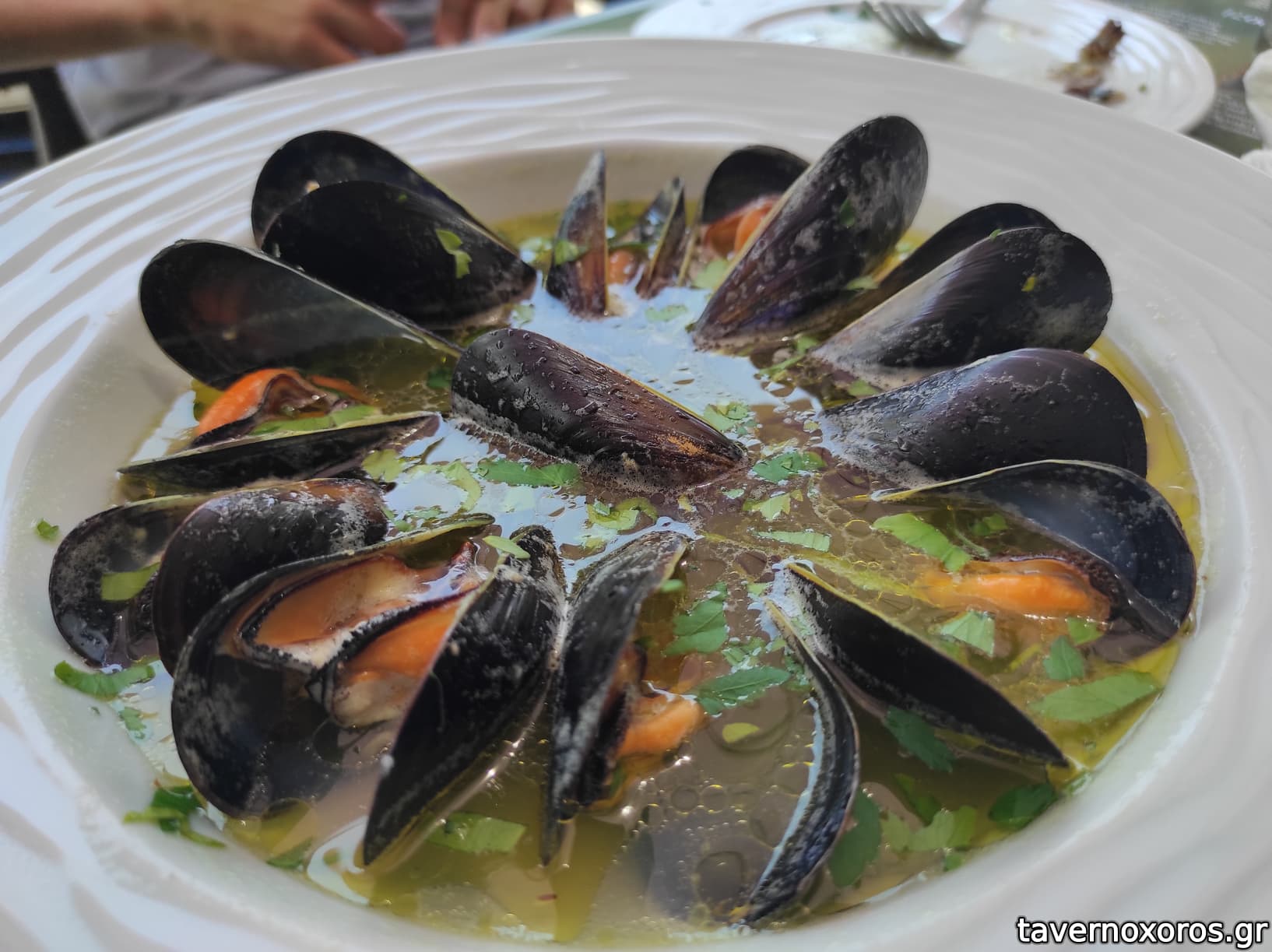 - Μύδια αχνιστά. Μέτρια. Τα μύδια νόστιμα και μεγάλα, το ζουμί νερουλό και άκυρο (νερό με μια κουταλιά λάδι, χωρίς μυρωδικά).