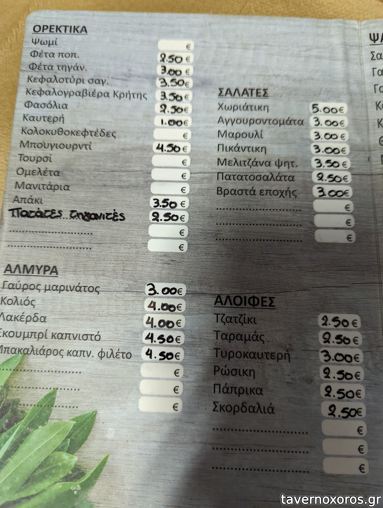 | Λέξεις κλειδιά | #χαρτιά, #tv, #ψάρια, #κρεατικά, #ποτά, #take away, #κολοκυθοκεφτέδες, #μανιτάρια, #ομελέτα, #απάκι, #φασόλια γίγαντες, #πάπρικα, #γαύρος, #σαρδέλα, #μπακαλιάρος σκορδαλιά, #γαλέος, #μύδια, #θράψαλα, #γαρίδες, #σαφρίδια, #κουτσομούρες, #μπακαλιαράκια, #παστά, #κολιός παστός, #γαύρος μαρινάτος, #σουβλάκια, #σουτζουκάκια, #πανσέτα, #χοιρινή, #λουκάνικο, #μπιφτεκάκια, #τηγανιά, #κοτόπουλο |
