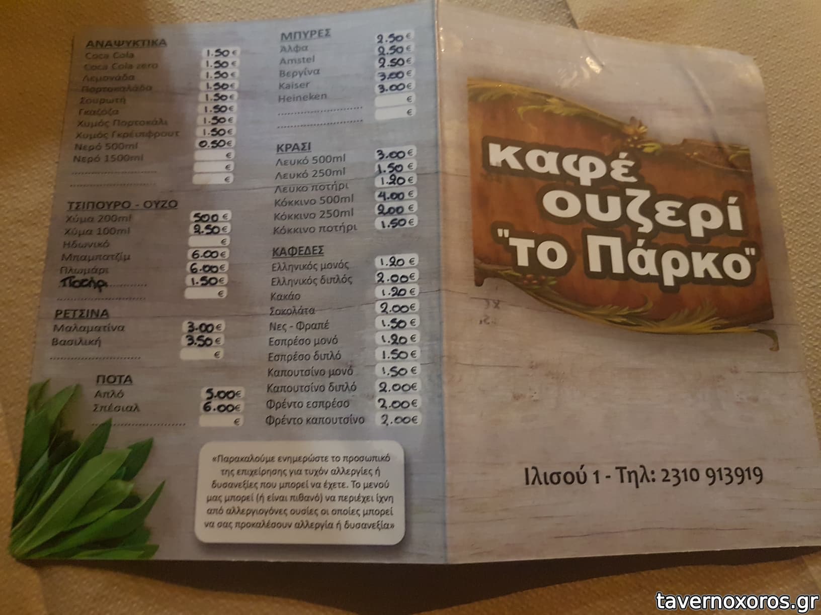 Στο τέλος πάντα κερνούν ή καρπούζι ή παγωτάκια ή πορτοκαλόπιτα ή ρεβανί. Απόδειξη δίνουν πάντοτε. Με λογική κατανάλωση αλκοόλ, συνήθως μας βγαίνει γύρω στα 16 – 18 € το άτομο. Σε γενικές γραμμές φεύγουμε ευχαριστημένοι. Συνιστάται σε όσους καταλαβαίνουν από καφενεία και δεν έχουν την απαίτηση ένα τέτοιο μαγαζί να σερβίρει μενού επιπέδου μισελέν…