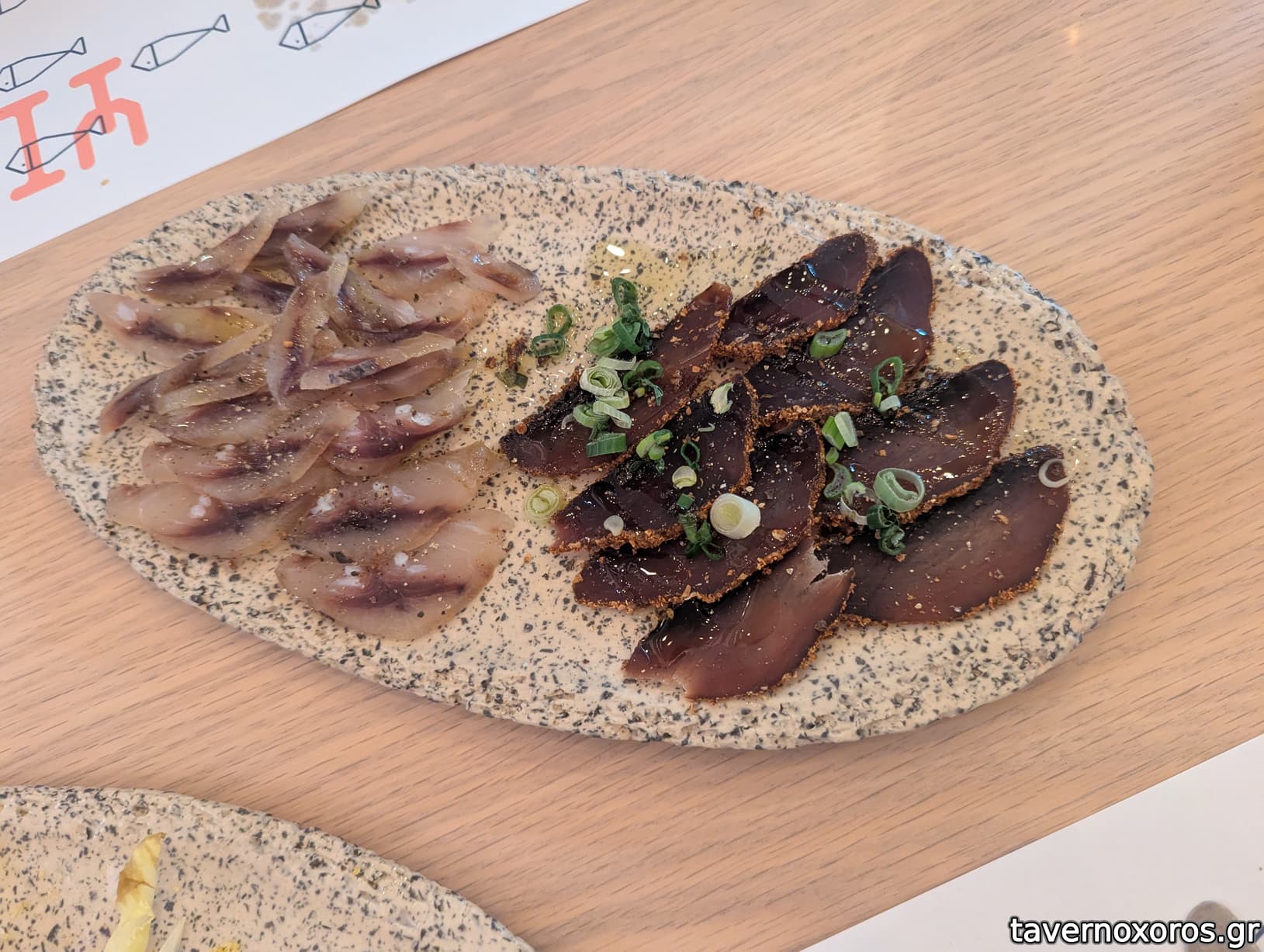 Απάκι τόνου (πολύ καλό) & Λούζα μυλοκόπι (δε μου άρεσε) & Παστουρμάς ξιφία (εξαιρετικό)
