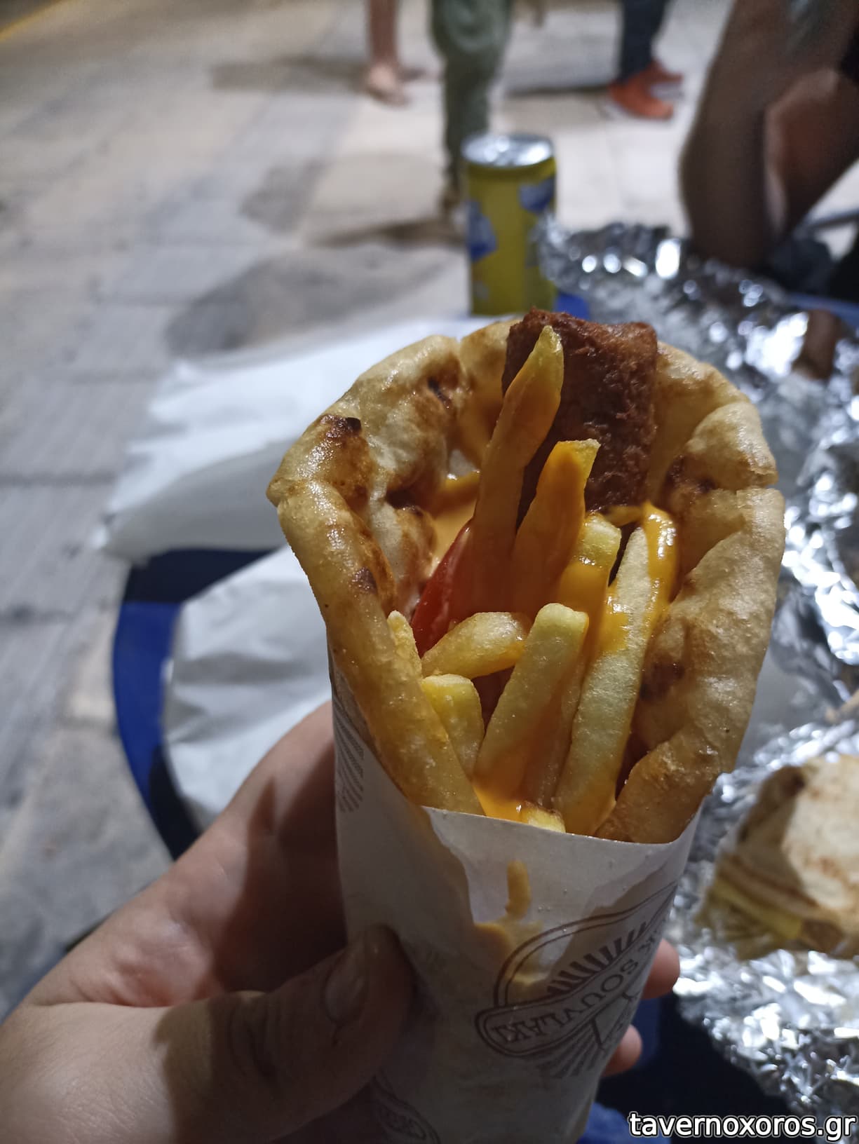 "Απόλα" με τζατζίκι, κρεμμύδι, ντομάτα, πατάτα, ενώ συμπληρωματικά διαθέτει κέτσαπ, μουστάρδα και σως (μουστάρδας).