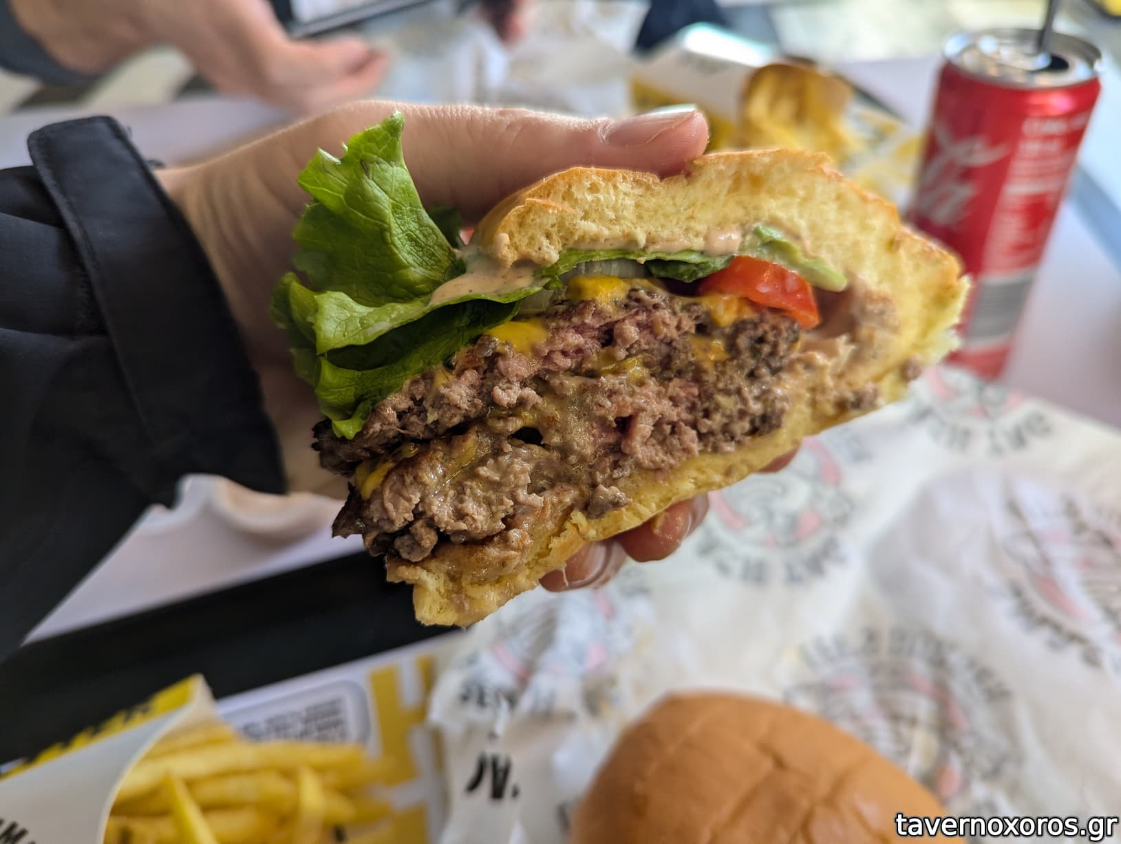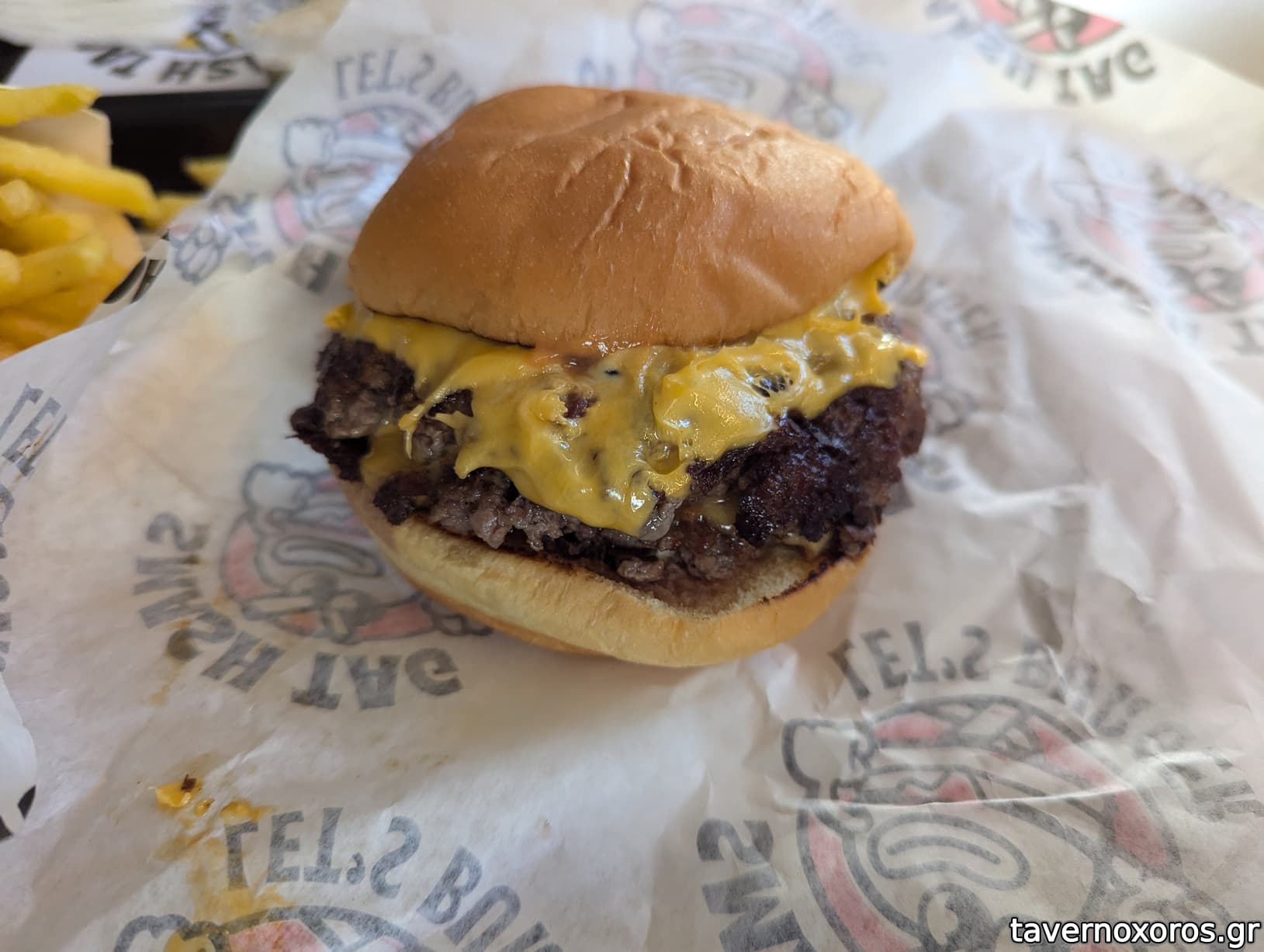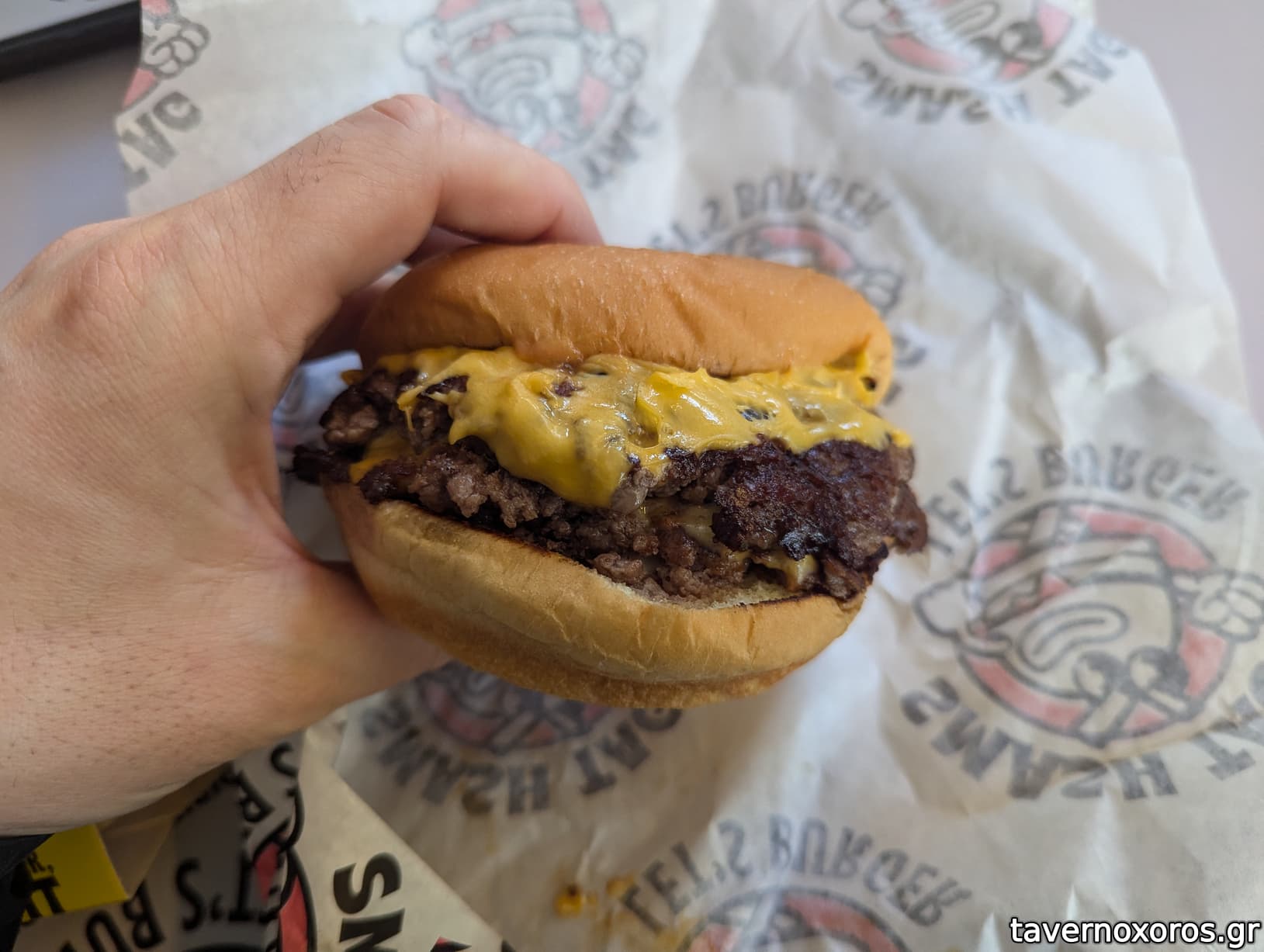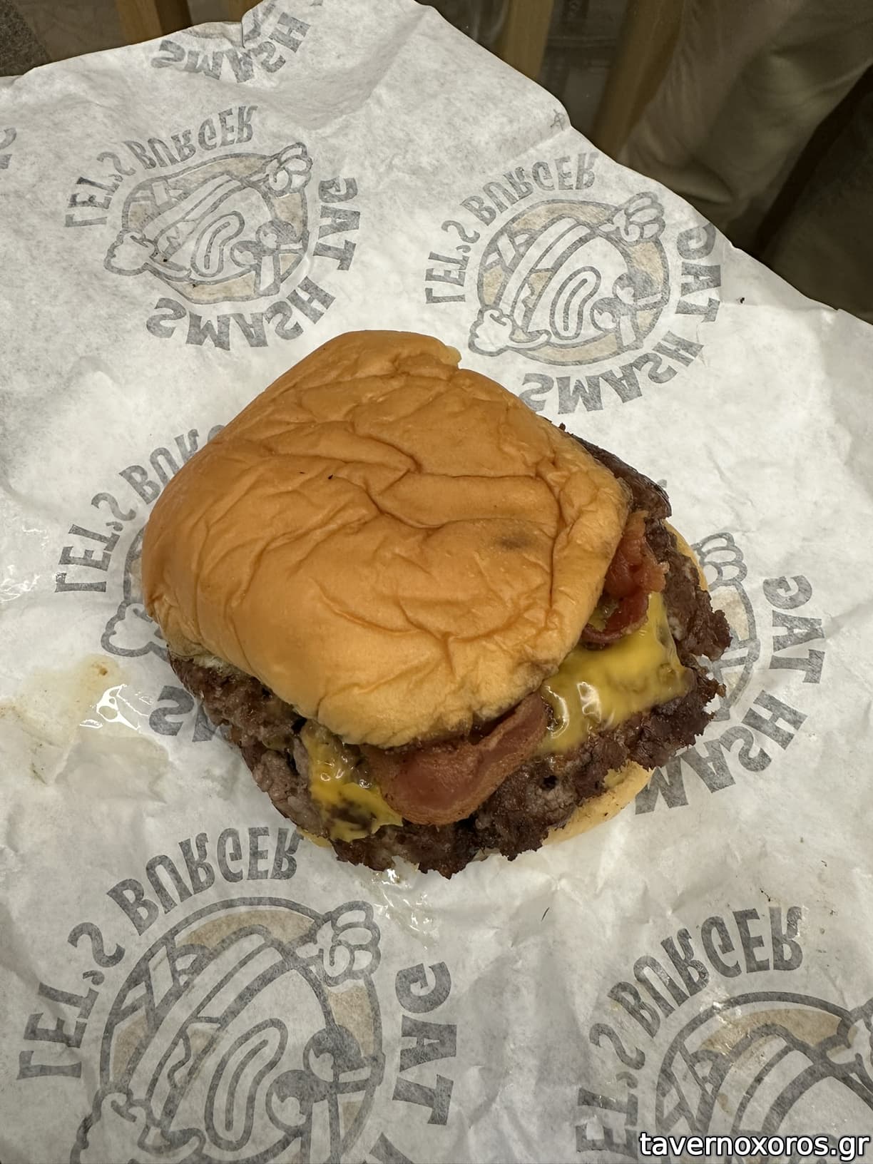 "Smash Red" με διπλό μπιφτέκι (πολύ καλό)