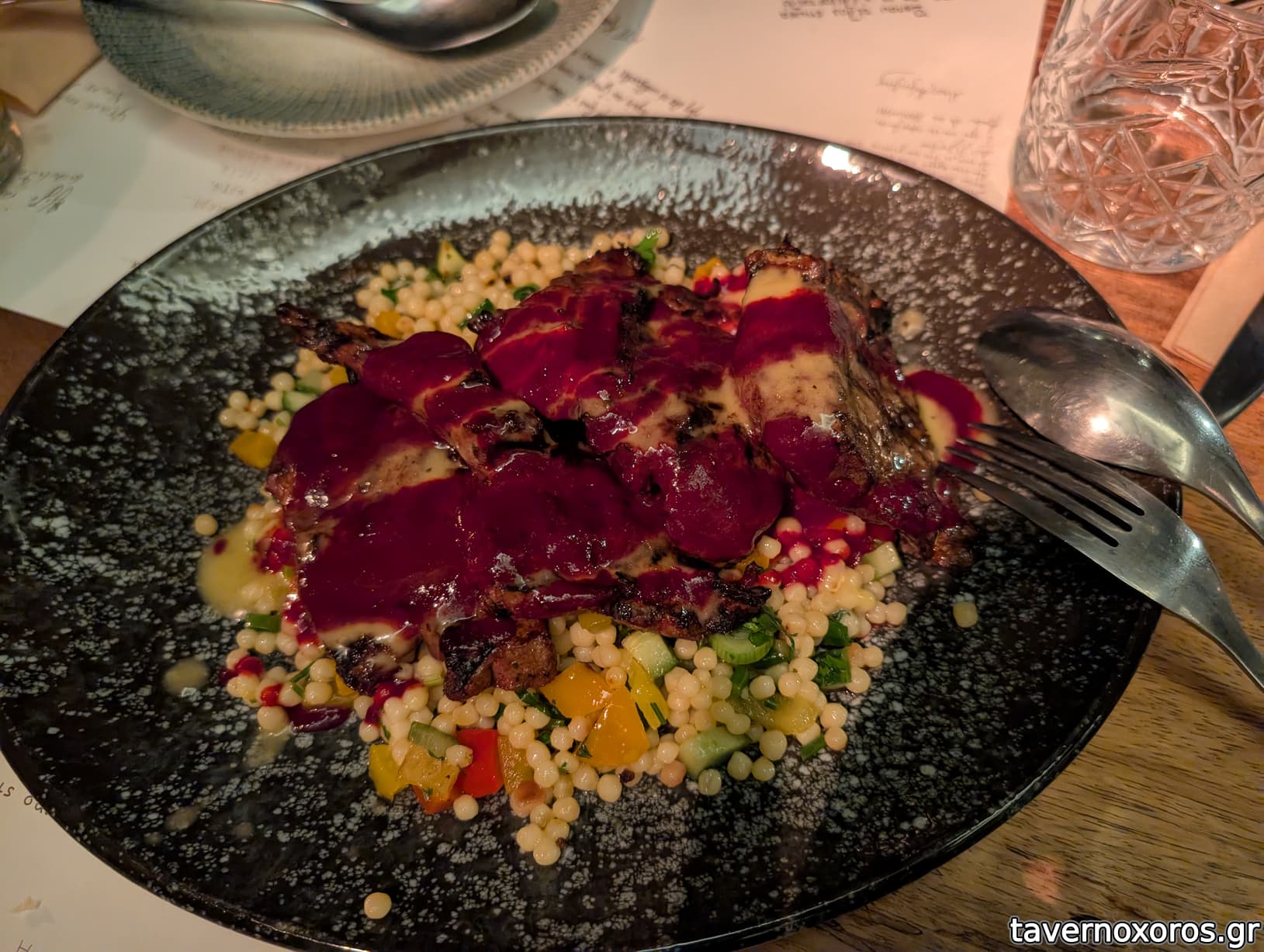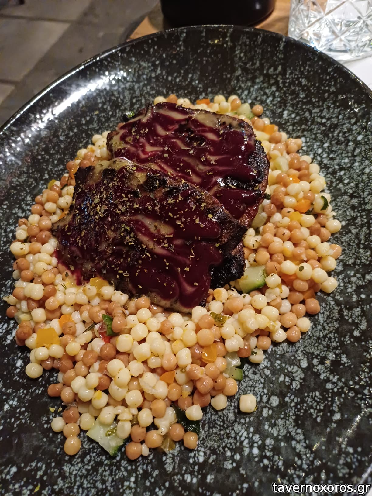 "Μοσχαρίσιο συκώτι στα κάρβουνα με σάλτσα κόκκινων φρούτων & αρωματικό κους κους" (απλώς οκ)