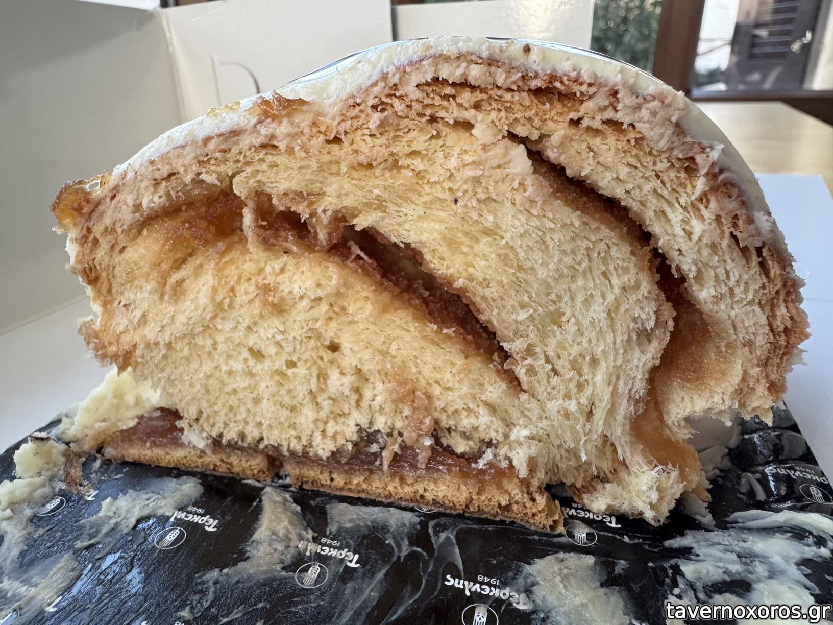 Τσουρέκι με κάστανο και επικάλυψη λευκή σοκολάτα (τομή, λιγωτικό εκτός αν ακολουθήσει μετά από ρακές σαν επιδόρπιο)