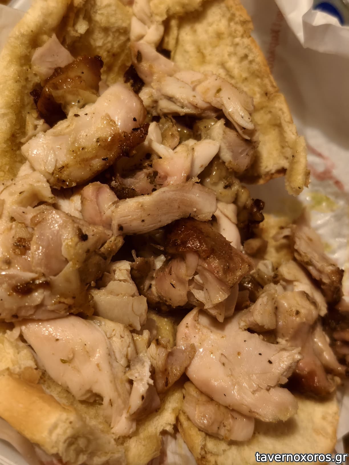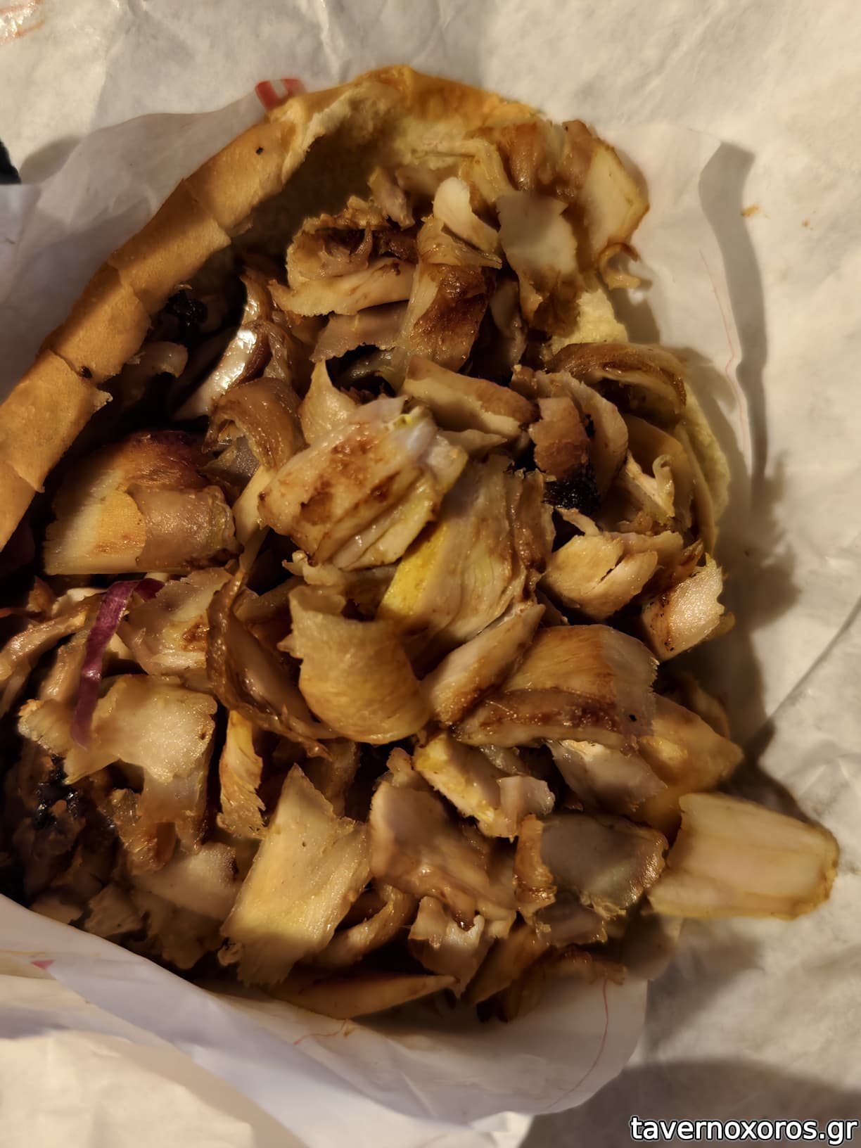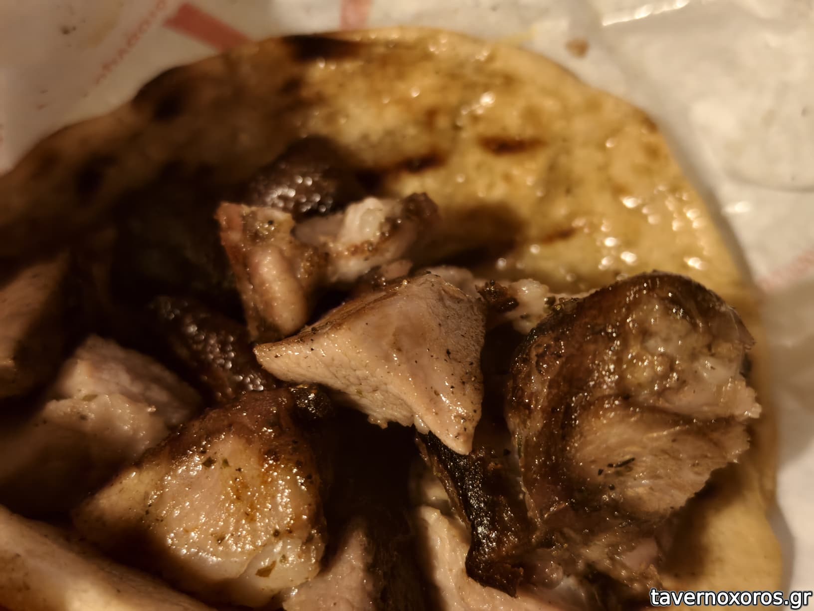 Κοντοσούβλι χοιρινό σε πίτα (κακό, με πολύ λίπος)