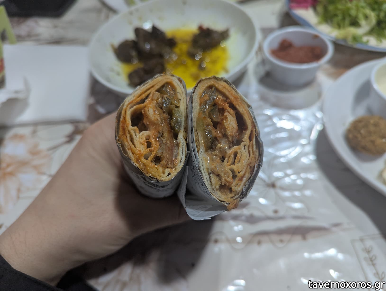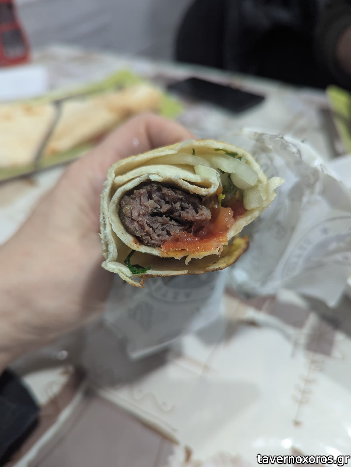Μού αρέσει που βάζουν μέσα πολλά λαχανικά- τουρσιά και σάλτσες (κάτι σα harissa & το τέλειο σκορδο- λεμονο- γιάουρτο!). Επίσης όπως έχω ξανατονίσει, το τυλιχτό, στο τέλος ξαπλωτό, "