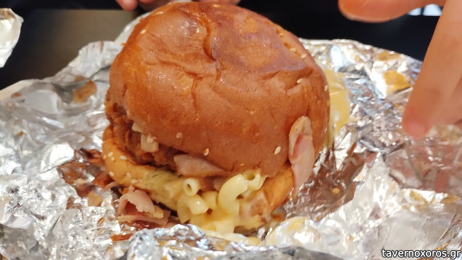 Chicken burger πίτα στο τσένταρ και μακαρονάκι (!) ήταν αμήχανο. BBQ burger επίσης πίτα στην σως του ήταν απλώς οκ. Truffle burger ξεχώρισε νομίζω, γιατί ήταν πιο λιτό. Τέλος popcorn chicken μια χαρά ορεκτικό για τη μέση για όλους.