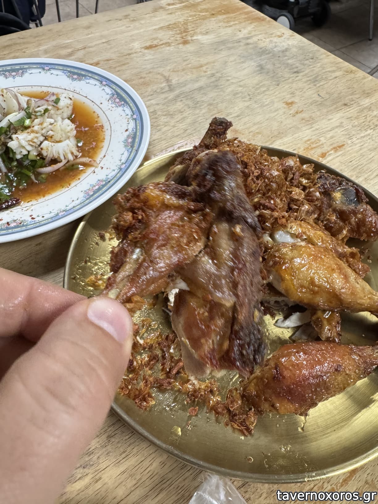 Το κοτοπουλάκι ήταν πολύ καλό , ελαφρύ για τηγανητό χωρίς επικάλυψη από κάποιο κουρκούτι. Απλά το σερβίρουν με μπόλικο τηγανητό σκόρδο που το πάει σε άλλα επίπεδα.