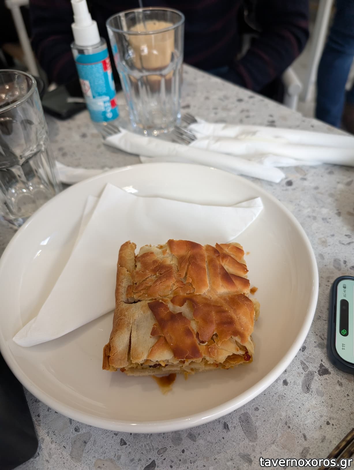 Περνώντας απέξω, μας φάνηκε συμπαθητικό και είπαμε να καθίσουμε για πρωινό. Δυστυχώς, μας ενημέρωσαν ότι το άτομο που είναι στην κουζίνα έλειπε (ήταν το πρώτο Σάββατο του Ιανουαρίου του 2026) και, κατά συνέπεια, δεν μπορούσαν να φτιάξουν τίποτα από όσα αναγράφονταν στον κατάλογο (ομελέτες, pancakes κτλ). Παρ’ όλα αυτά, οι πίτες που δοκιμάσαμε ήταν αρκετά νόστιμες και η εξυπηρέτηση πολύ ευχάριστη.