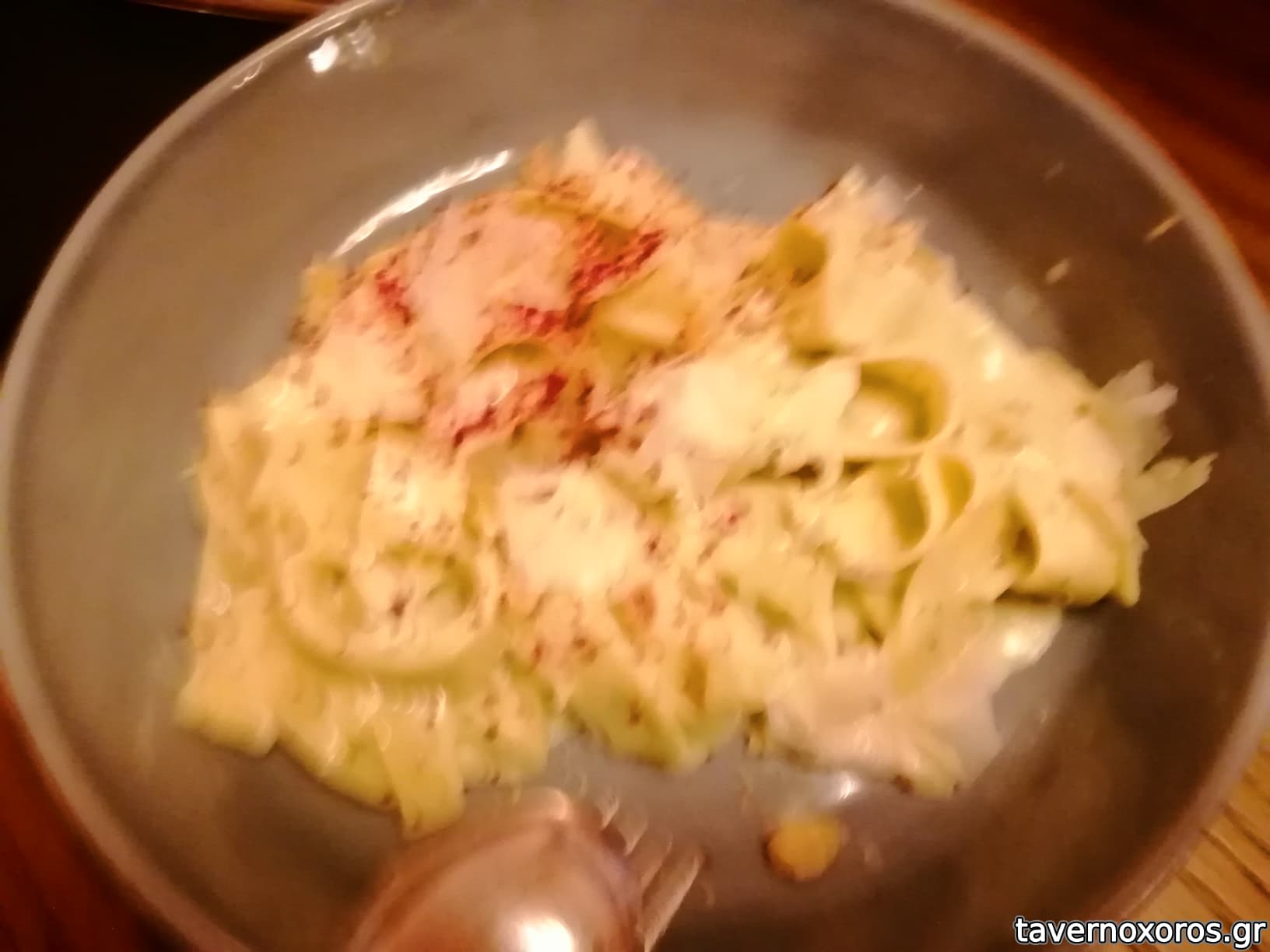 Παπαρδέλες με κοτόπουλο και πέστο φουντουκιού (13€, δεν μου άρεσε, οι παπαρδέλες είχαν λασπώσει)