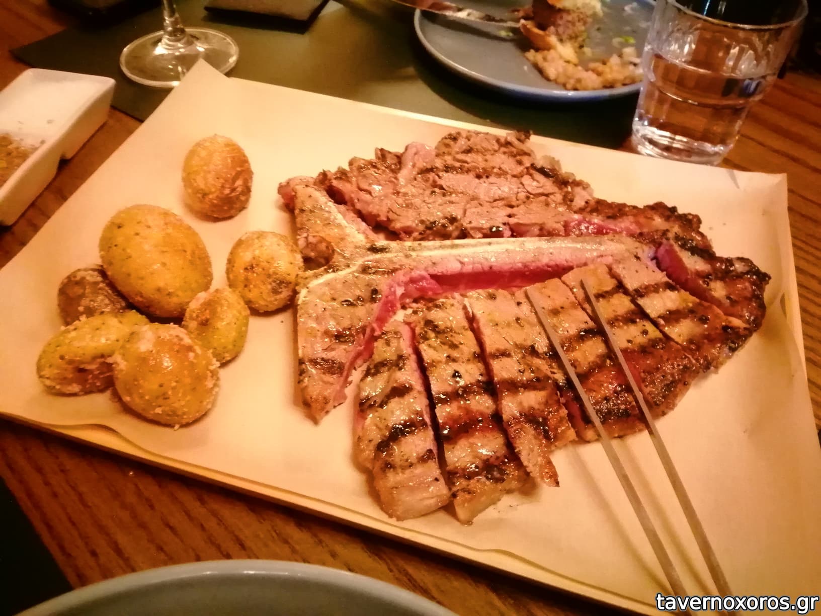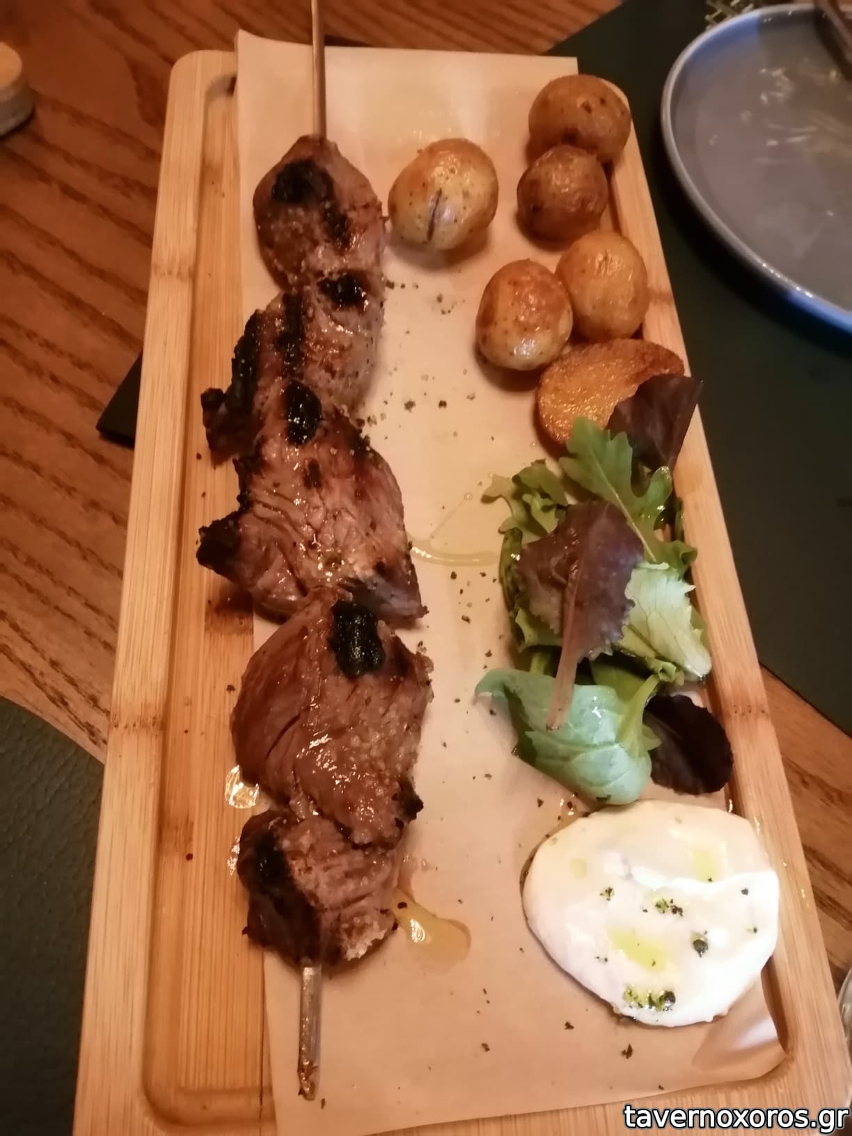Μοσχάρι κοντοσούβλι με καπνιστή πατάτα και γαλοτύρι (18€, οκ, δεν θα το ξαναέπαιρνα)