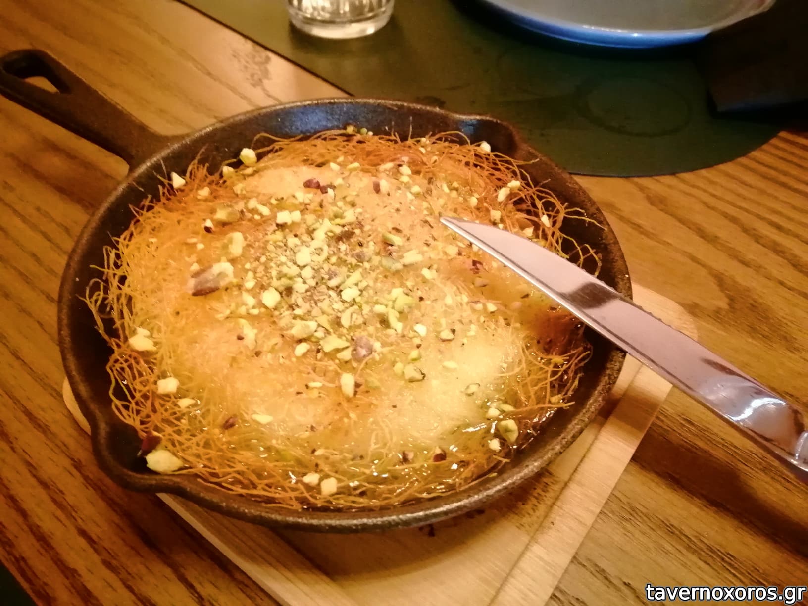 Τραγανό καταΐφι γαλακτομπούρεκο, μέλι (7€, όχι κάτι ιδιαίτερο)