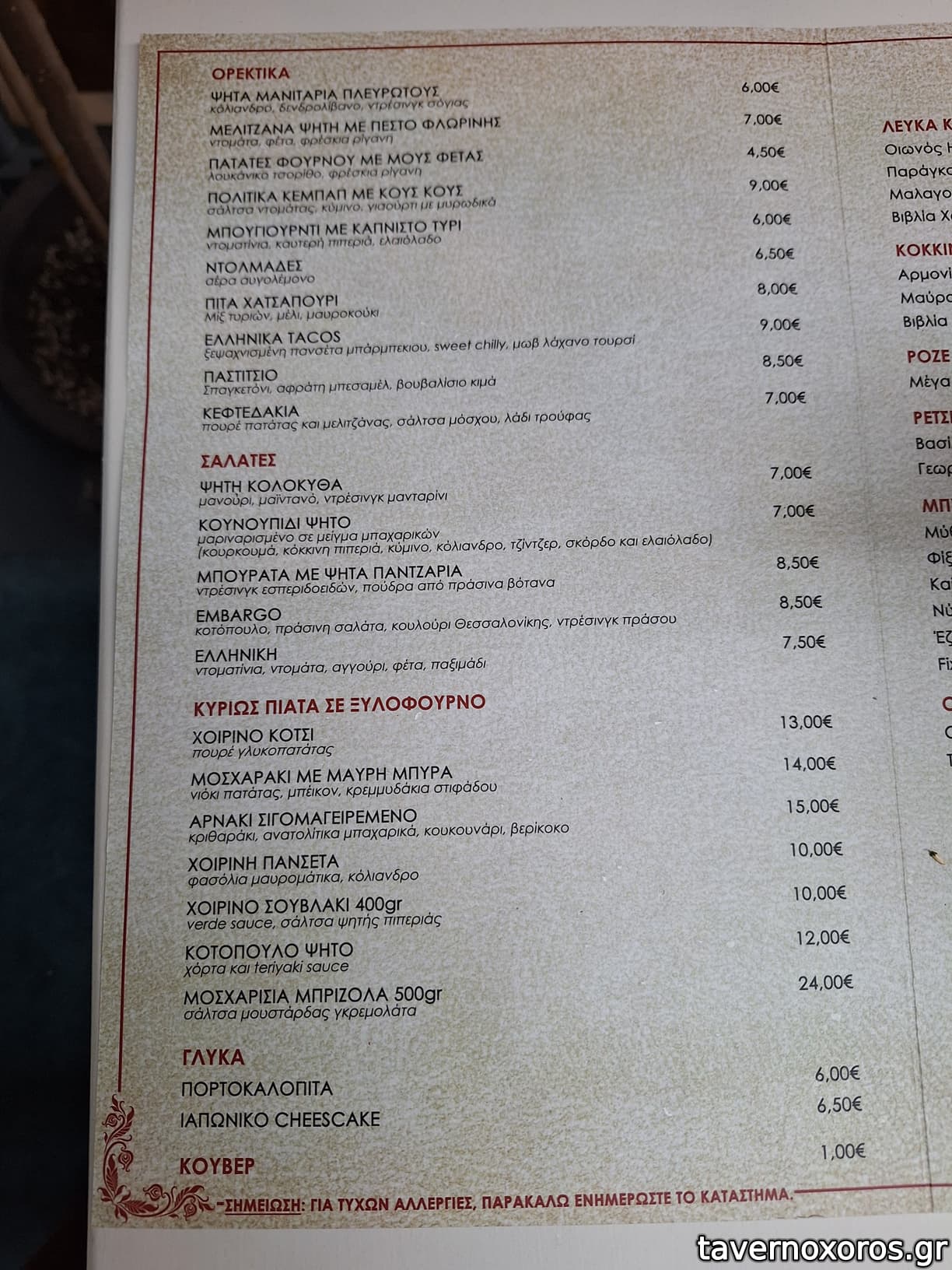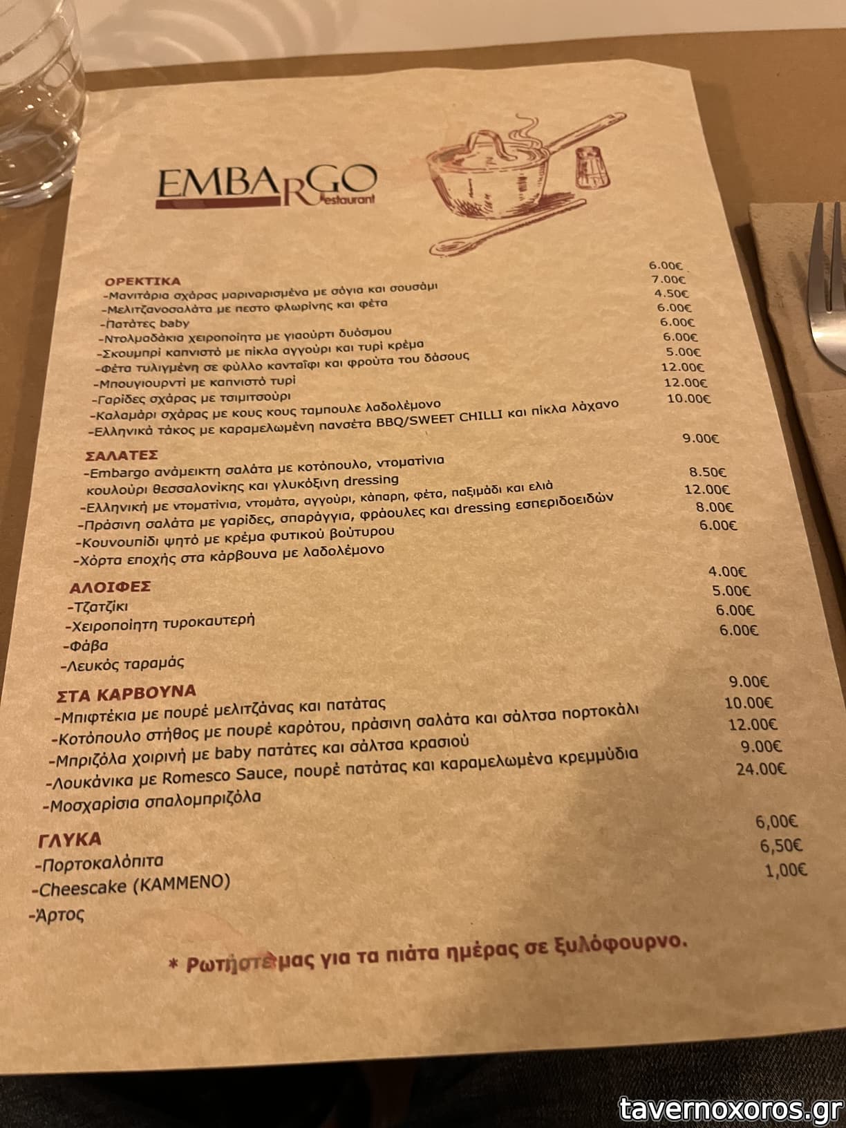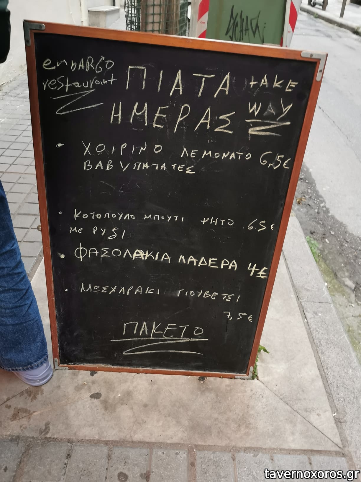 Εκτός μαγαζιού υπάρχει και πίνακας με κάποια μαγειρευτά εκτός μενού που νομίζω ότι σερβίρονται μόνο πακέτο.