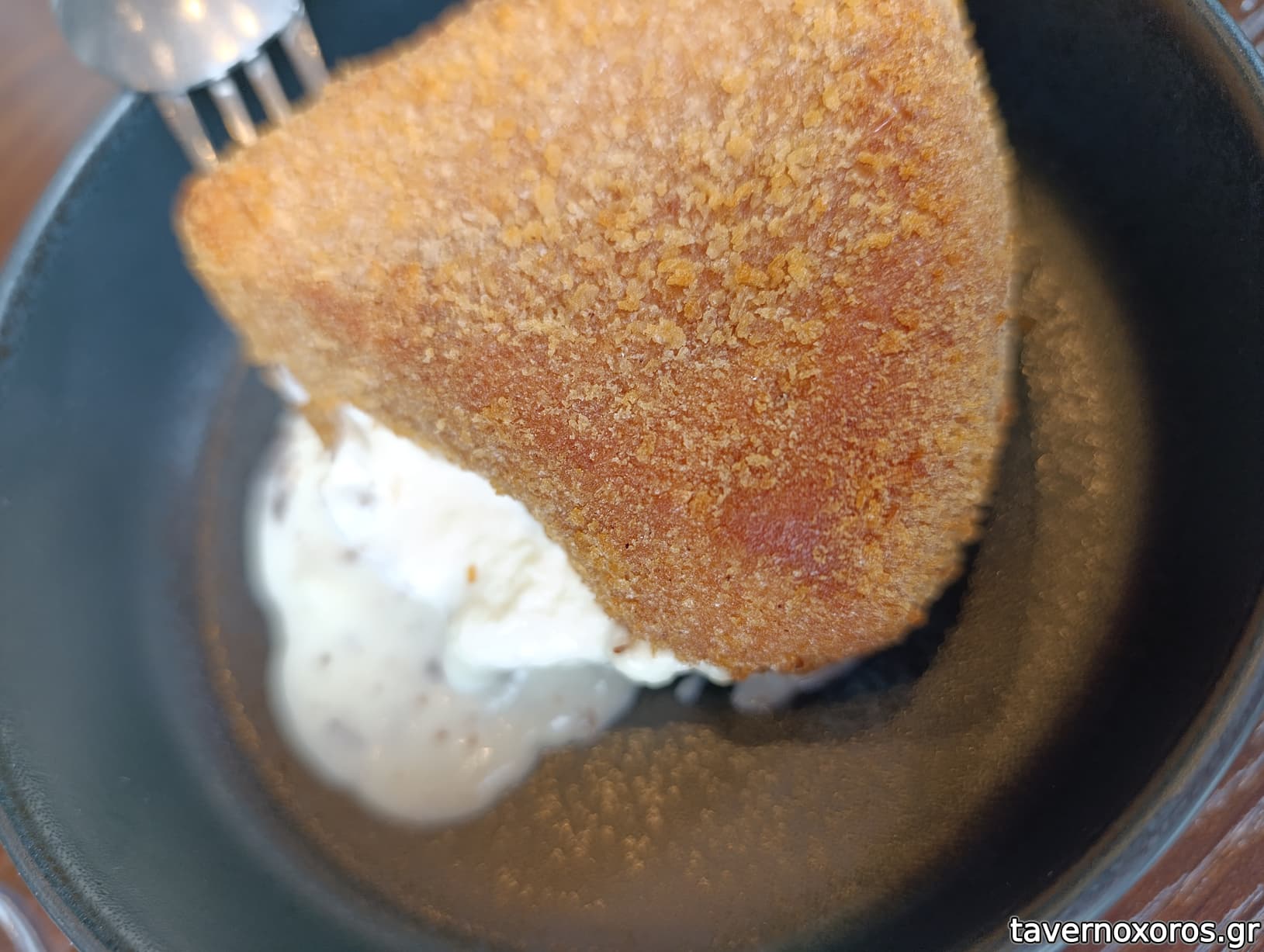 "Σαγανάκι μπρι με τρούφα - μπρι Άργους, χειροποίητη πάστα μαύρης ελληνικής τρούφας" (16€, δεν μας άρεσε, μονότονο)