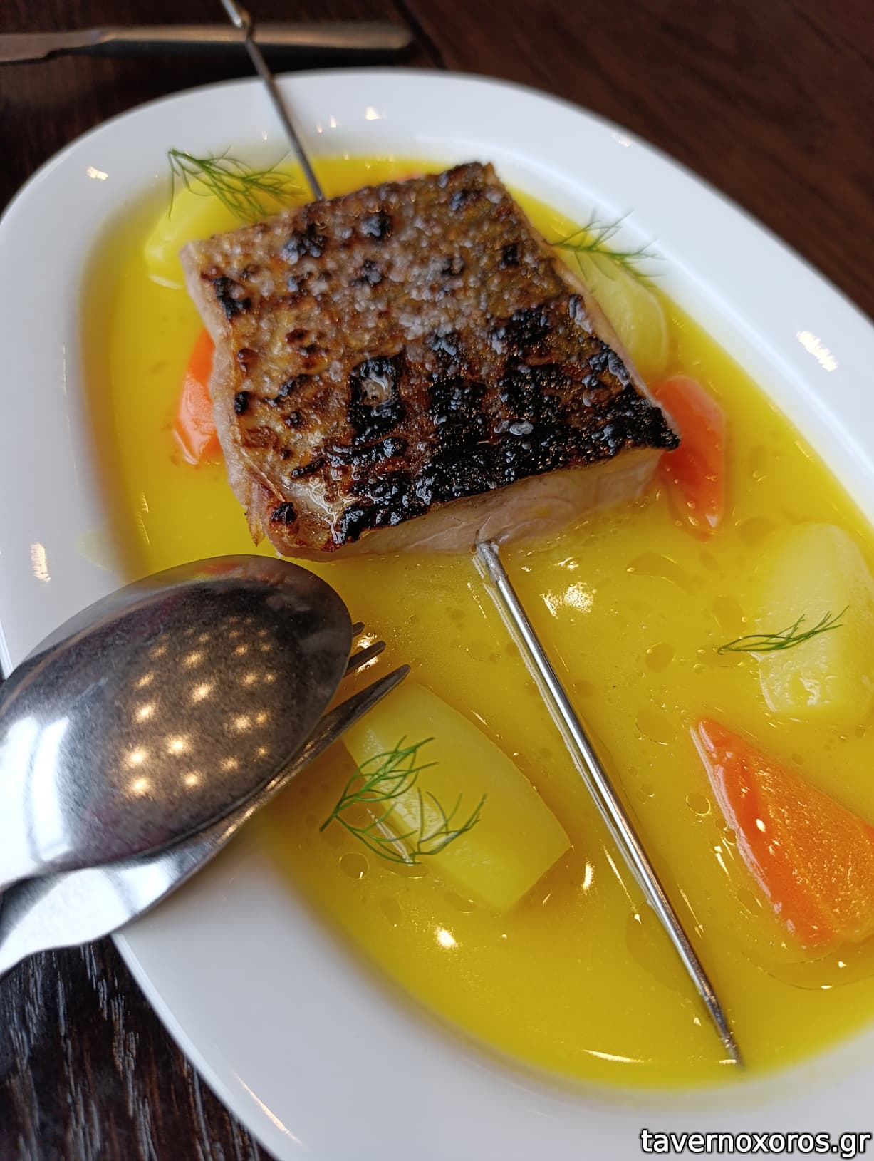 "Κέφαλος Μεσολογγίου σουβλάκι στη θράκα" (12€ η μισή μερίδα, καθαρές γεύσεις, ωραίο)