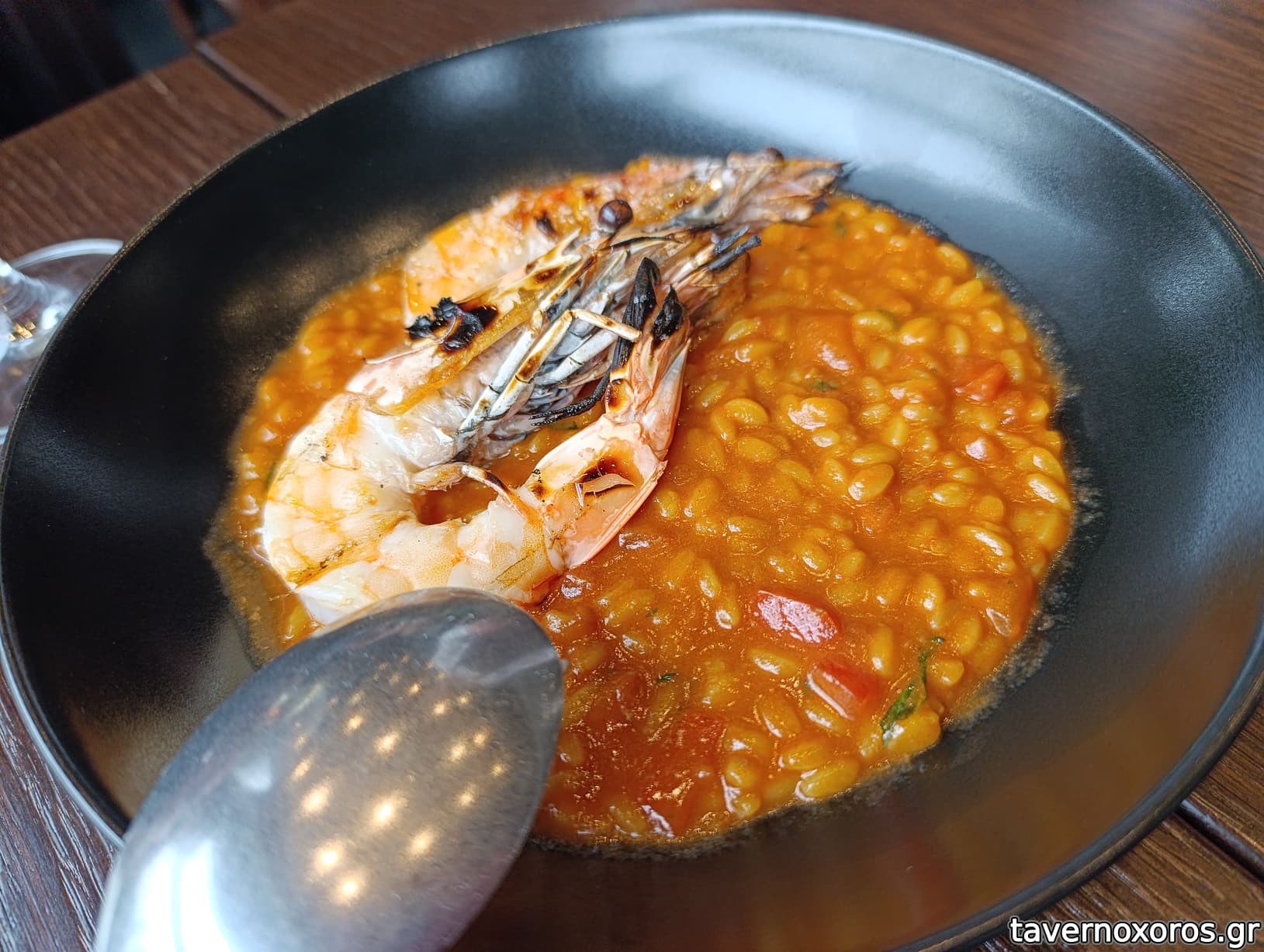 "Μανέστρα με γαρίδα Θερμαϊκού στη γκρίλα" (14,5€ η μισή μερίδα, ωραία)