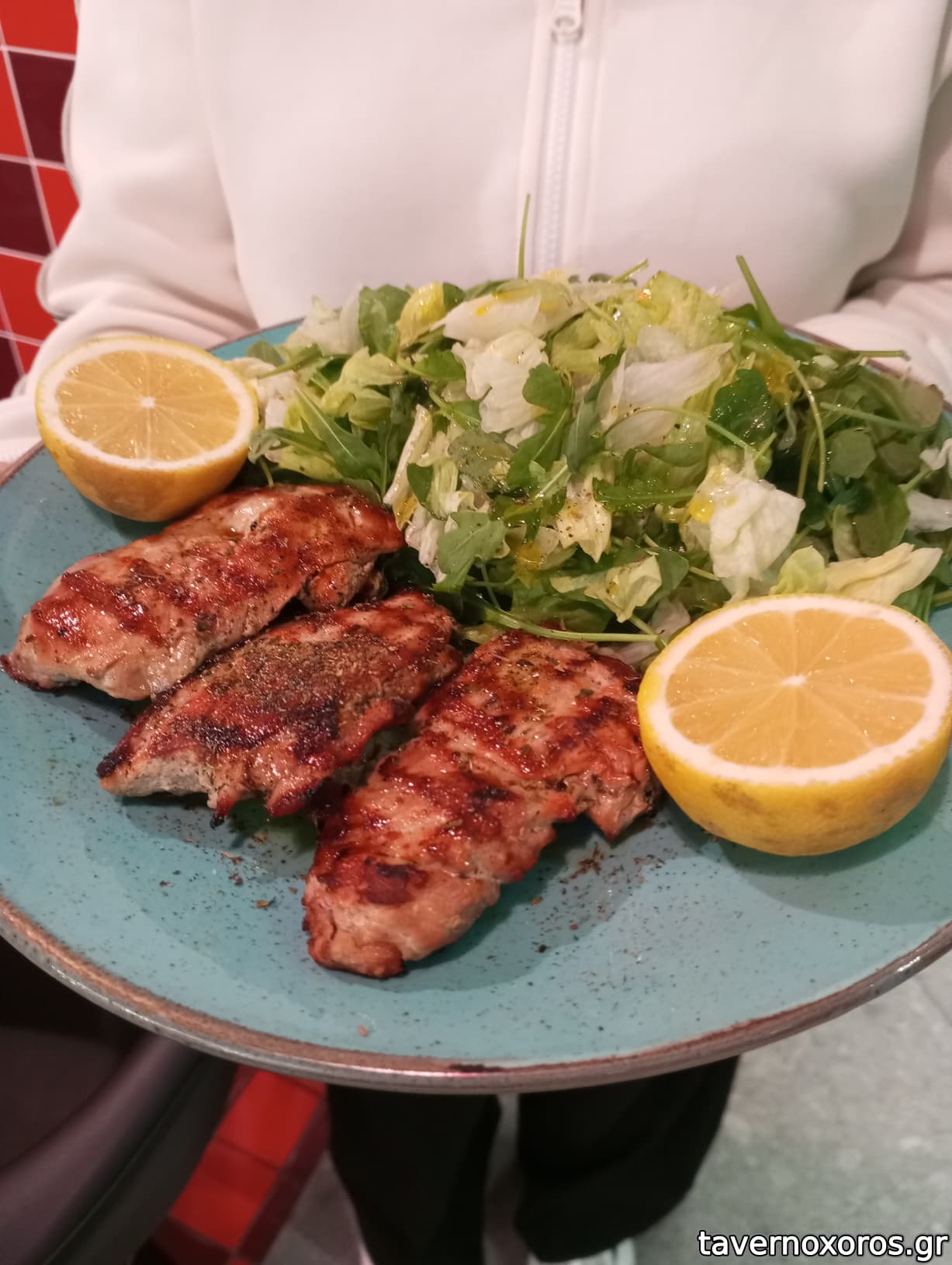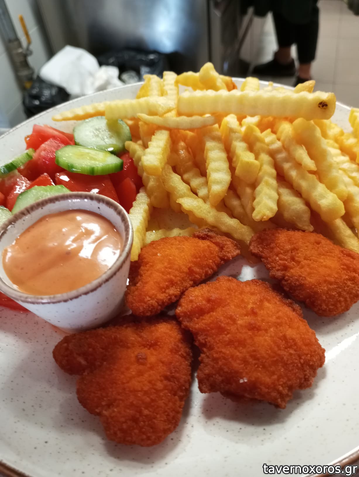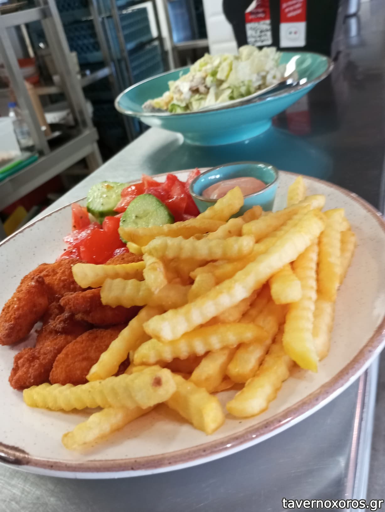 Κοτόπουλο Πανε με πατάτες και σαλάτα