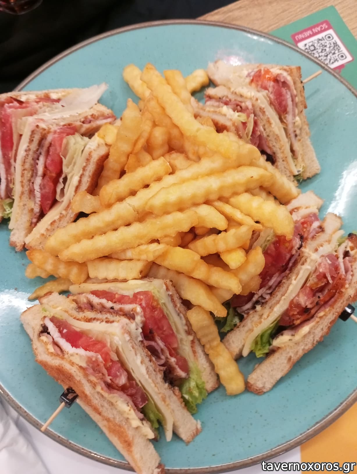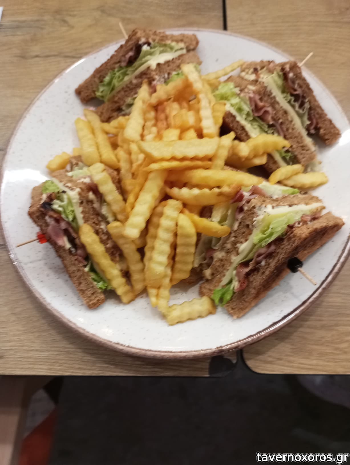Club Sandwich με ψωμί σίκαλης με πατάτες