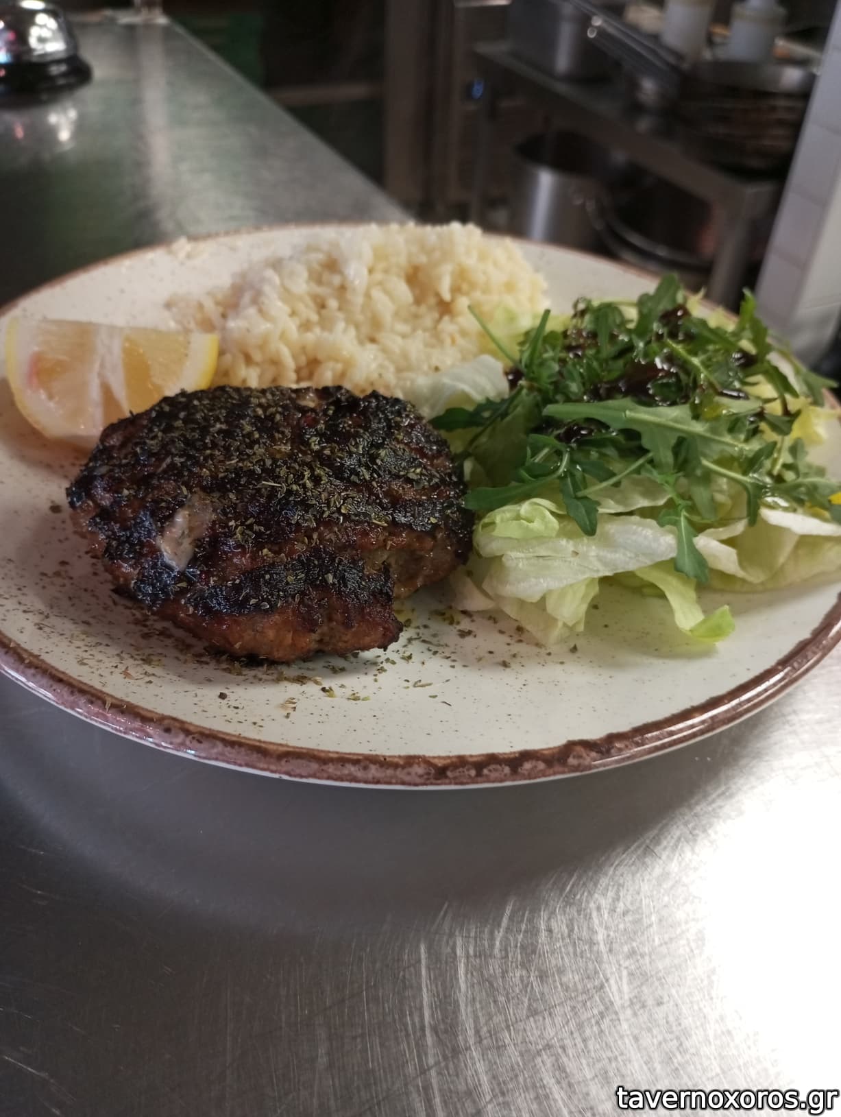 Μπιφτέκια σχάρας με πατάτες και ρύζι