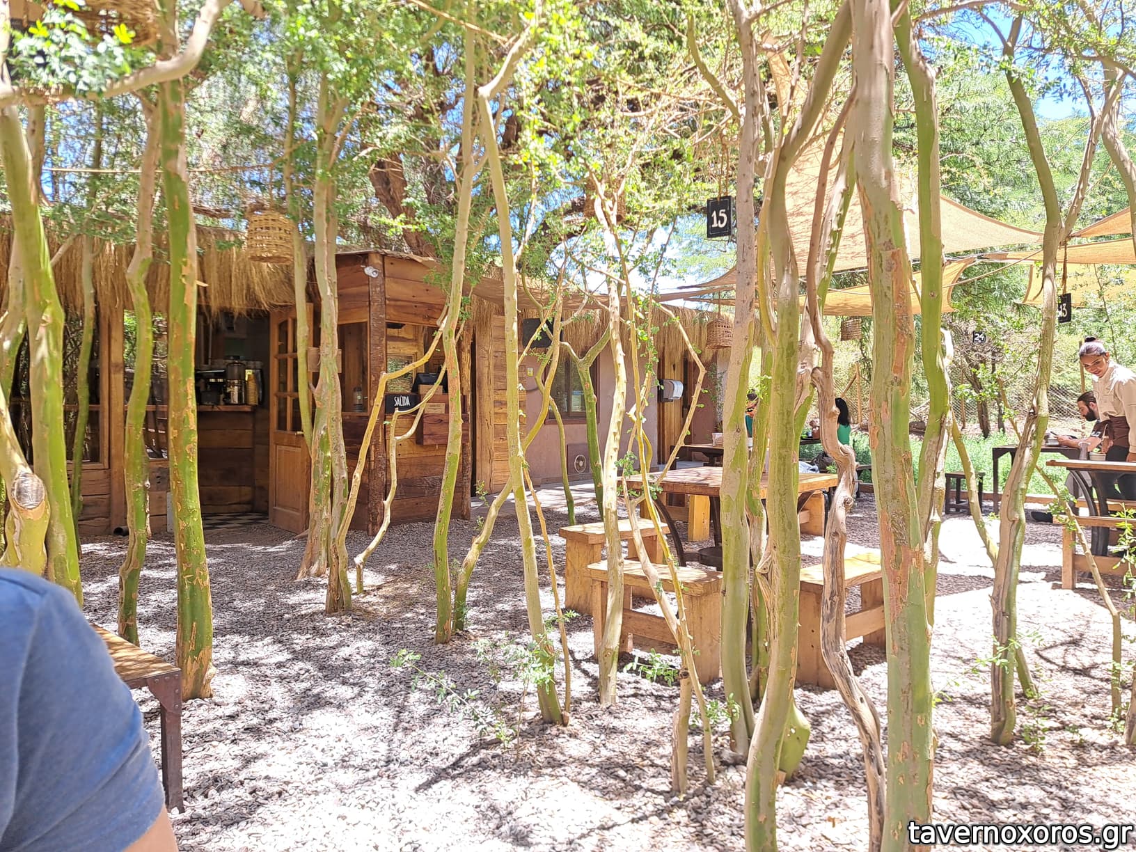 Γαλλικός φουρνος-καφε με διάφορα κρουασάν, μπαγκέτες, εκλερ και έναν πολύ όμορφο κήπο.