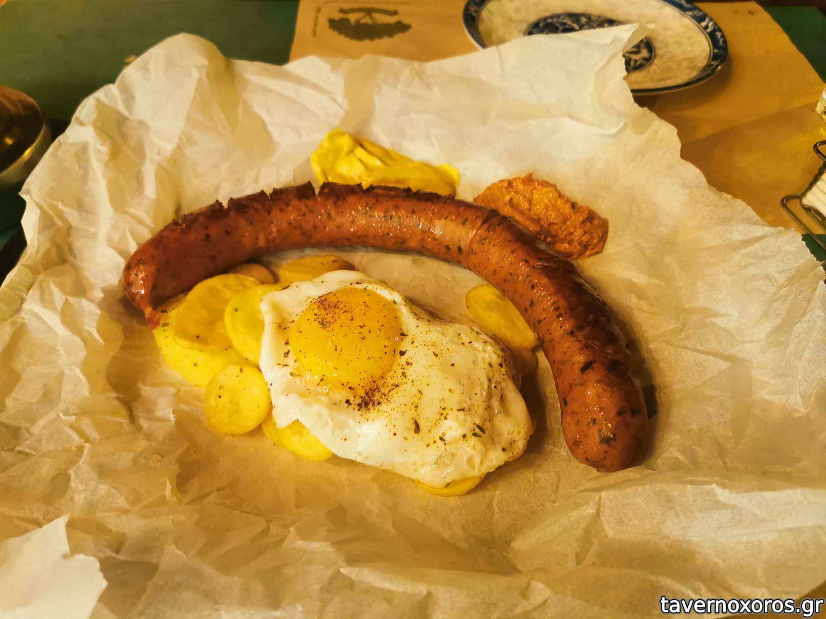 Αρμένικο λουκάνικο με αυγό. Ιδαίτερο, με αναμενόμενα μπόλικο μπαχάρι, μαλακό και πολύ νόστιμο.