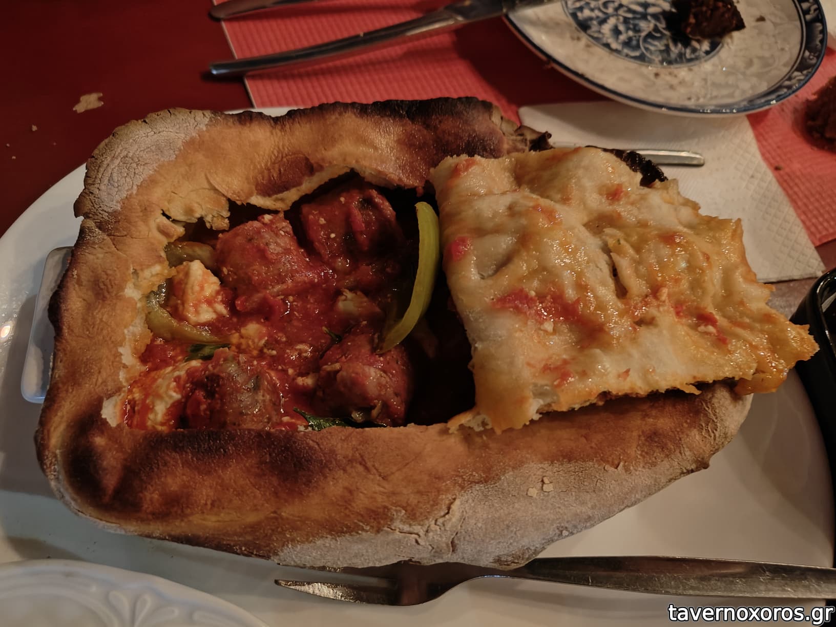 Σπετσοφάι σκεπαστό στο φούρνο. Ωραία παρουσίαση, στο ανοίγει επί τόπου, αρκετά καλό σε γεύση αλλά σίγουρα έχουμε φάει καλύτερα.