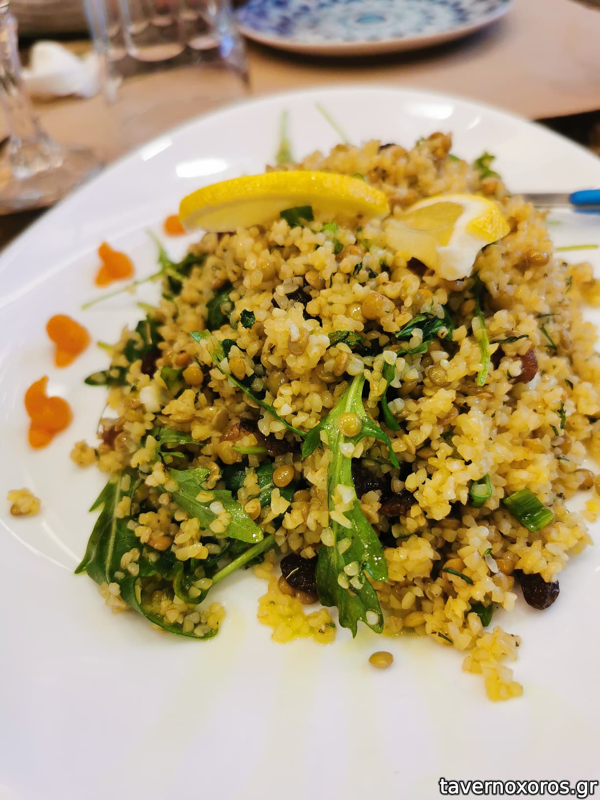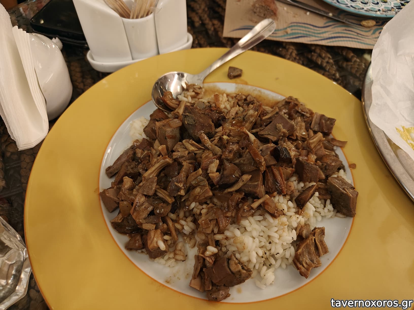 Γαρνιτούρα σε κάποια από τα πιάτα, ψιλοανούσιο ρύζι.