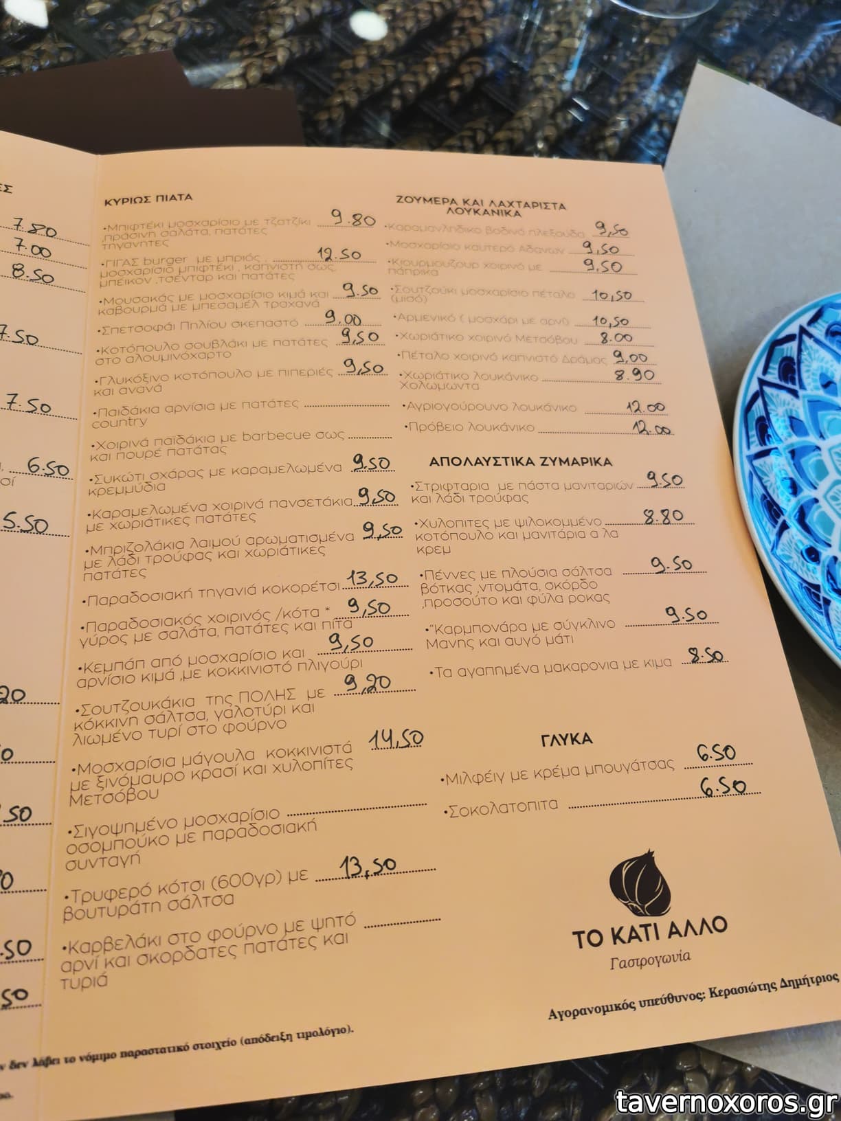 Ο ιδιοκτήτης λαλίστατος όπως πάντα, θα σου πει τον κατάλογο ακριβώς όπως είναι γραμμένος, με περισσή γλαφυρότητα τονίζοντας την ιδιαιτερότητα και του "