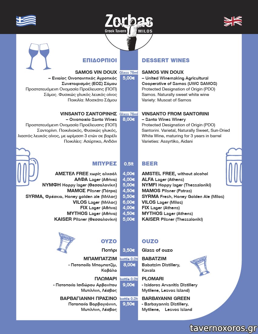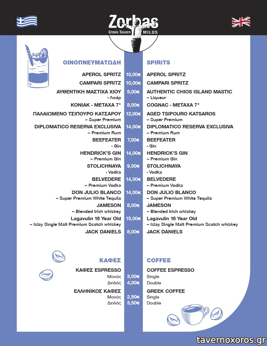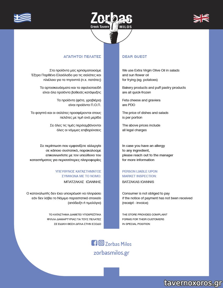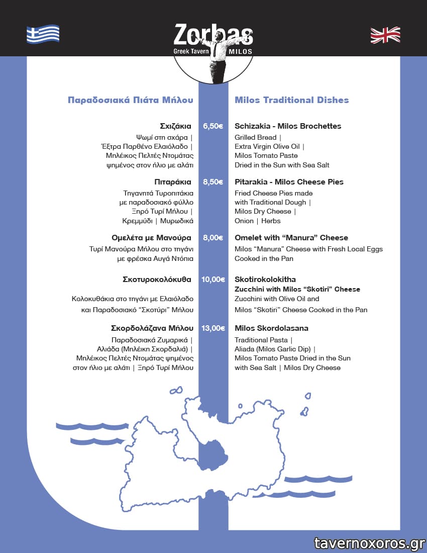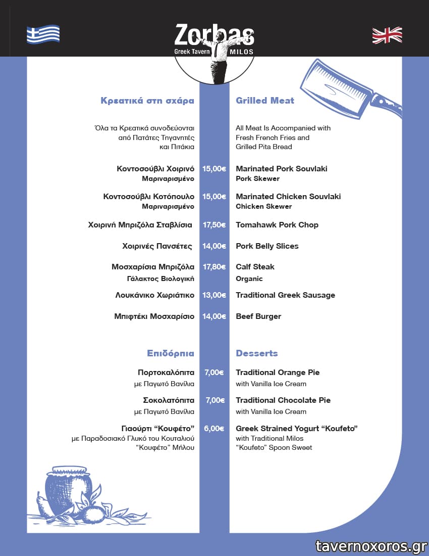 | Λέξεις κλειδιά | Ζορμπάς, #seaside, #κολοκυθοκεφτέδες, #ξινομυζήθρα, #ντολμαδάκια, #φάβα, #γαύρος μαρινάτος, #χταπόδι, #γαρίδες, #σαρδέλα, #γαύρος, #μπακαλιάρος σκορδαλιά, #σκοτύρι, #κολοκυθάκια, #σχιζάκια, #πιταράκια, #ομελέτα, #μανούρα, #σκορδολάζανα, #μουσακάς, #γεμιστά, #κόκορας κρασάτος, #αρνάκι γάστρα, #αρνάκι στο φούρνο, #χοιρινή, #μοσχαρίσια μπριζόλα, #κοντοσούβλι, #πανσέτα, #μπιφτέκι, #λουκάνικο, #πορτοκαλόπιτα, #κουφέτο |