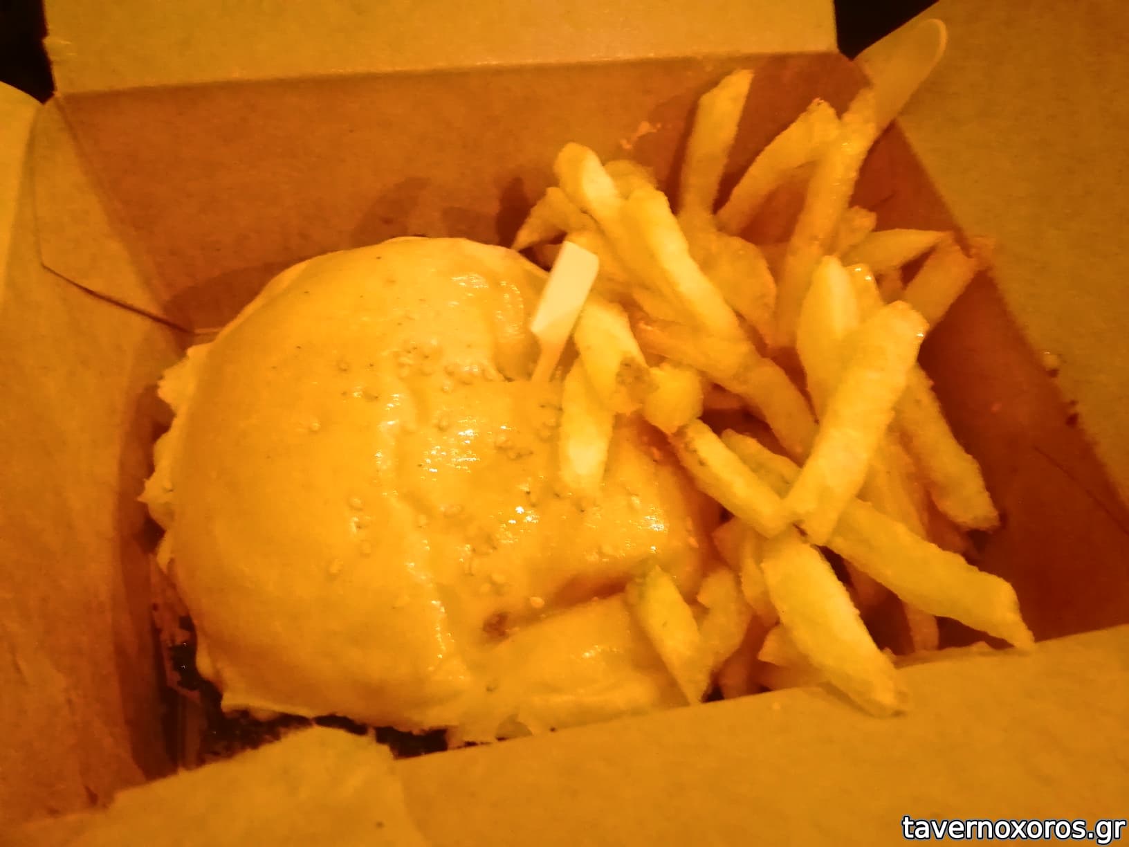 Μονό Oklahoma onion burger (νόστιμο, κάπως βαρύ ωστόσο, το ψωμάκι λασπερό)