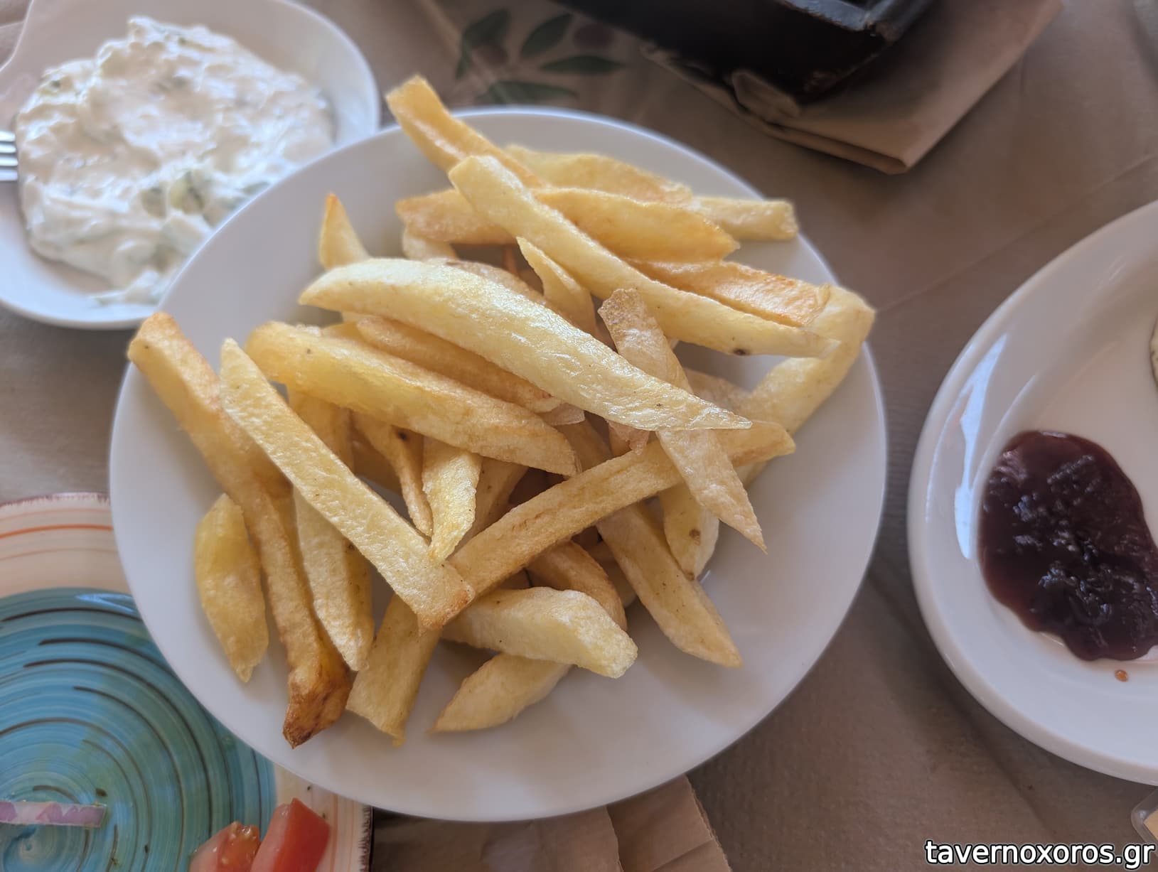 1 πιατέλα τηγανιτά διάφορα (πιπεριές, μελιτζάνες, κολοκυθάκια)